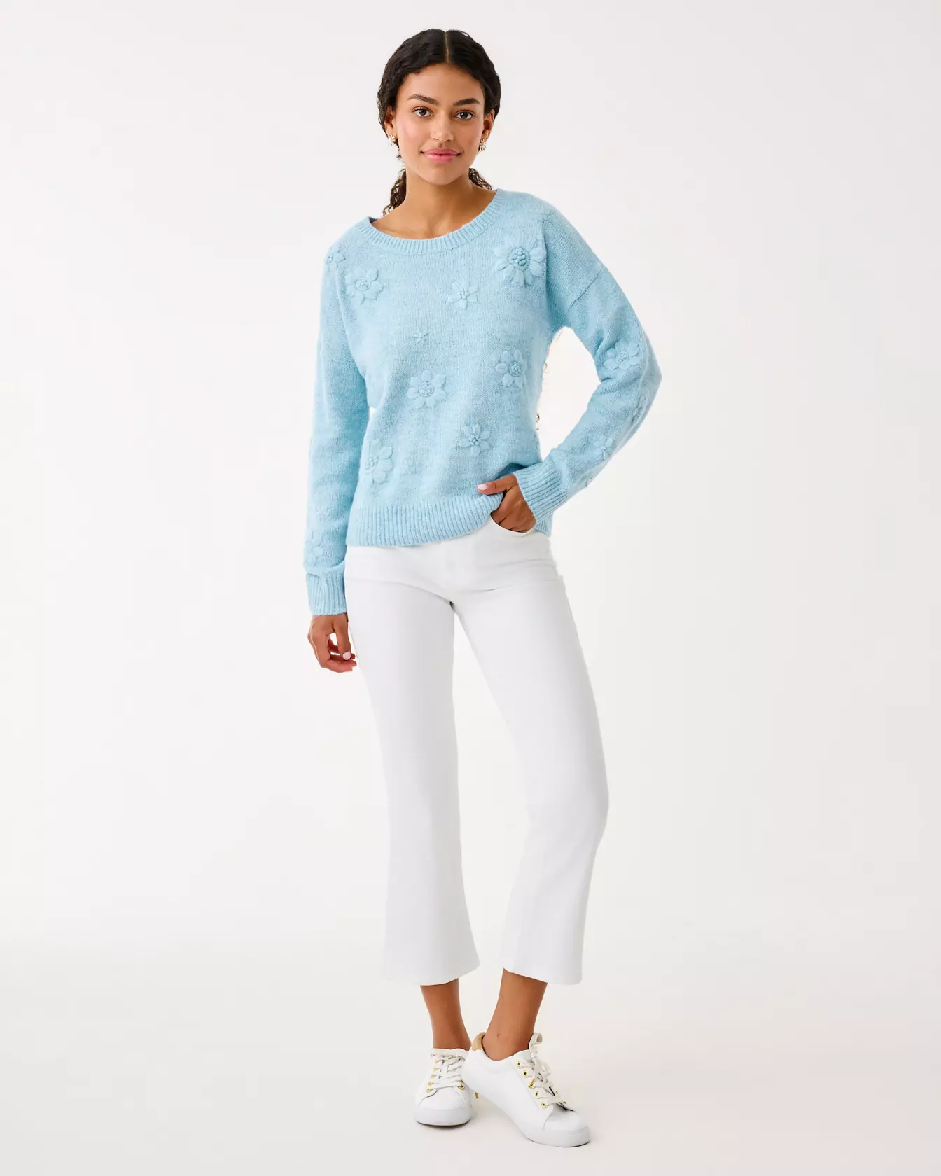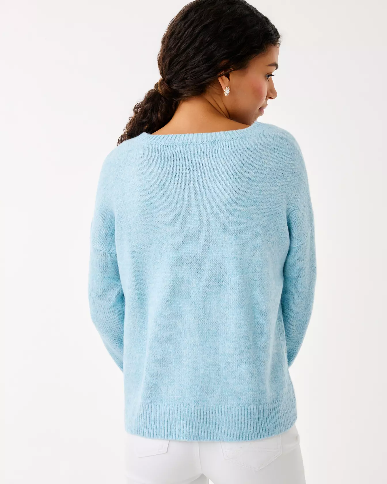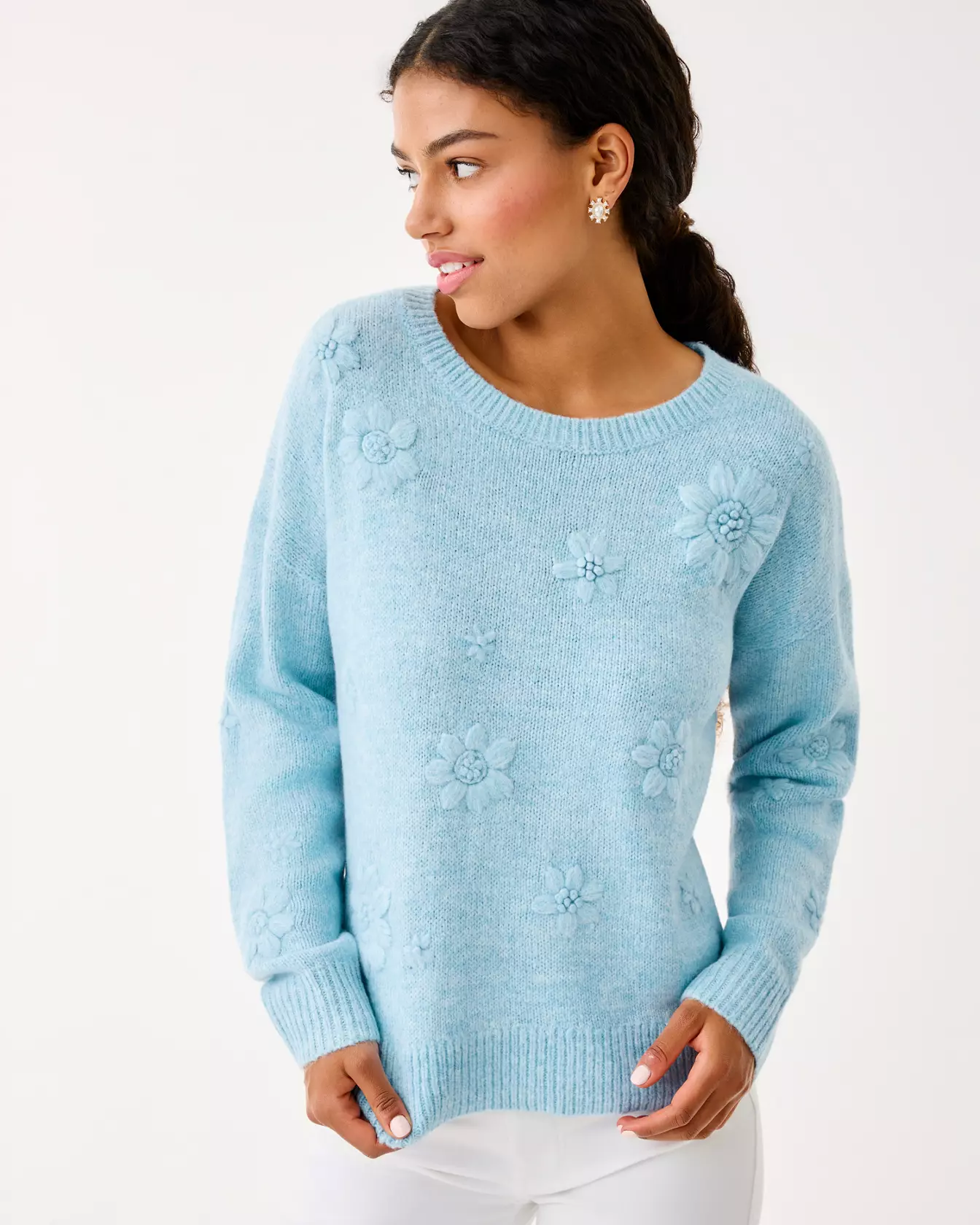 Elizabelle Sweater - Heathered Bonaire Blue Coastal Flowers