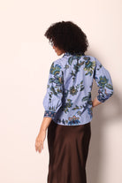The Elsa Top by Maude Vivante is a captivating blend of artistic expression and effortless sophistication. Rendered in a soft periwinkle blue, this exquisite blouse is adorned with a mosaic-inspired floral pattern that brings together rich tones of deep green, navy, teal, and subtle hints of gold. The detailed motif creates a stunning tapestry of color and texture, evoking the beauty of hand-painted tiles and vintage botanical prints. Every inch of the Elsa Top reflects Maude Vivante’s commitment to design excellence and thoughtful craftsmanship — resulting in a piece that feels both timeless and refreshingly modern.