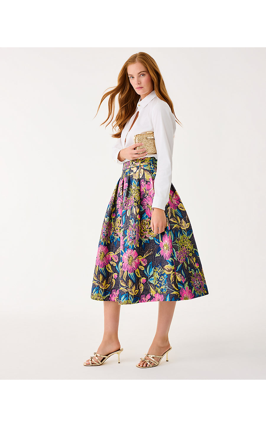 Elyce Midi Skirt - Multi Canopy Blooms Floral Jacquard