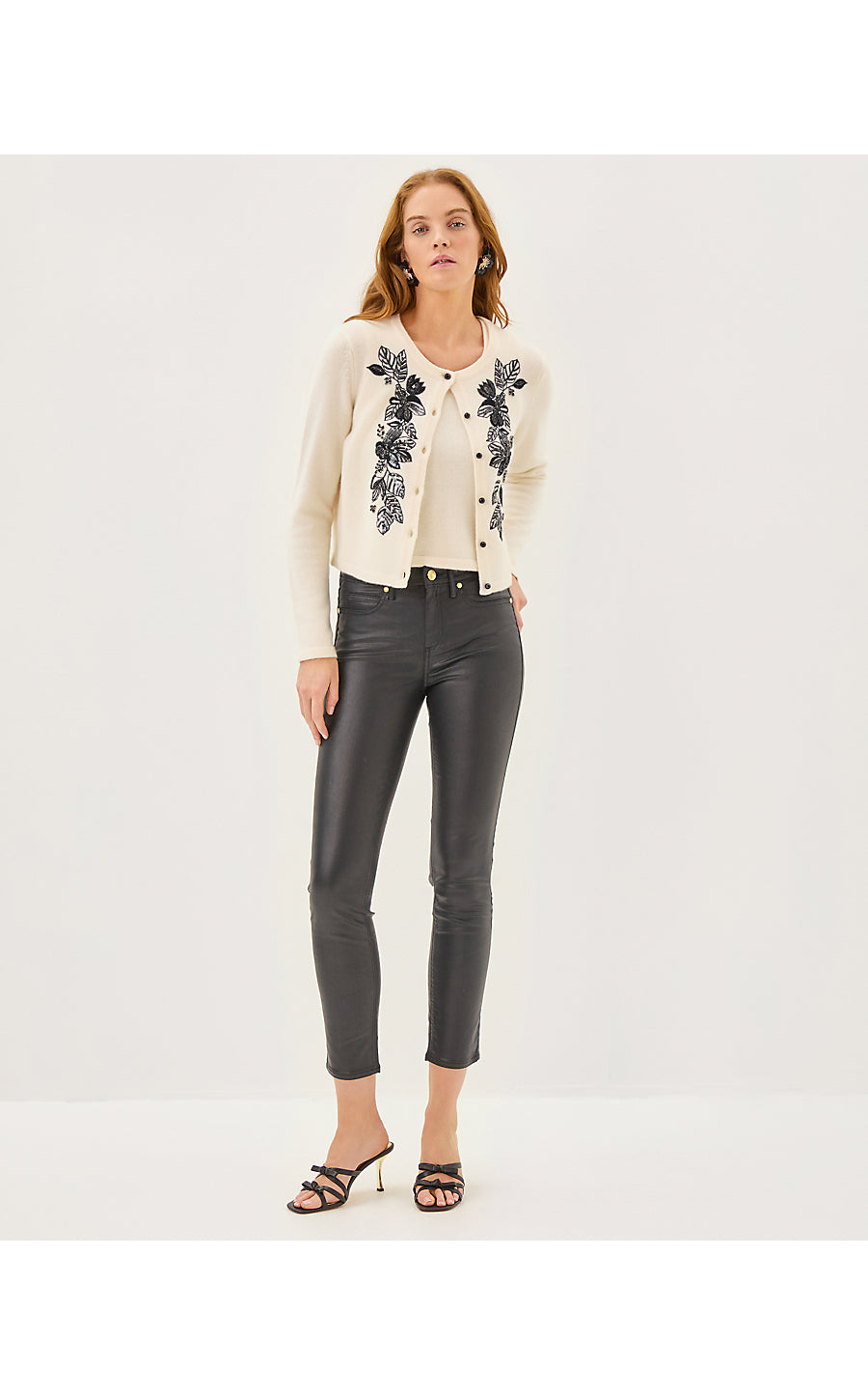 - Sweater set with a novelty embroidered cardigan and a matching tank.