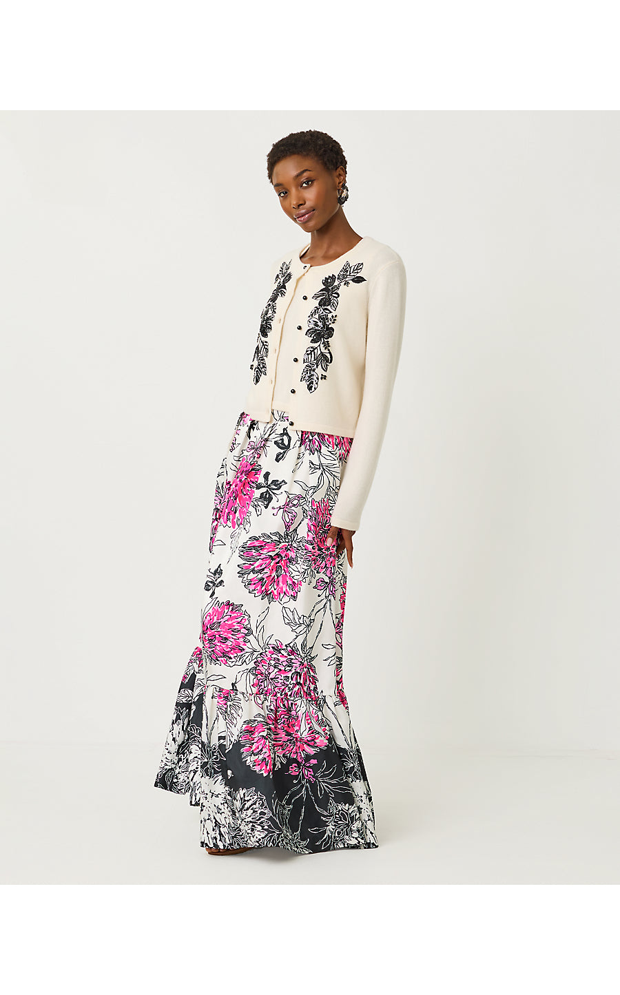 Emmarose Embroidered Cashmere Sweater Set - Coconut Dahlia Embroidery