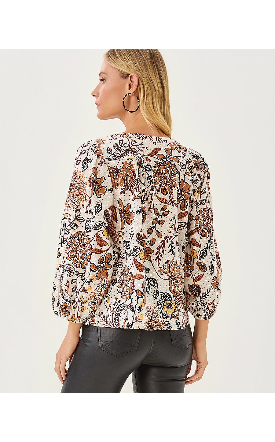 - Easy fit, long sleeve, button front top with a neckband and elastic cuffs.