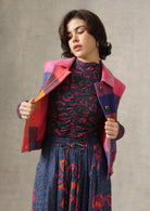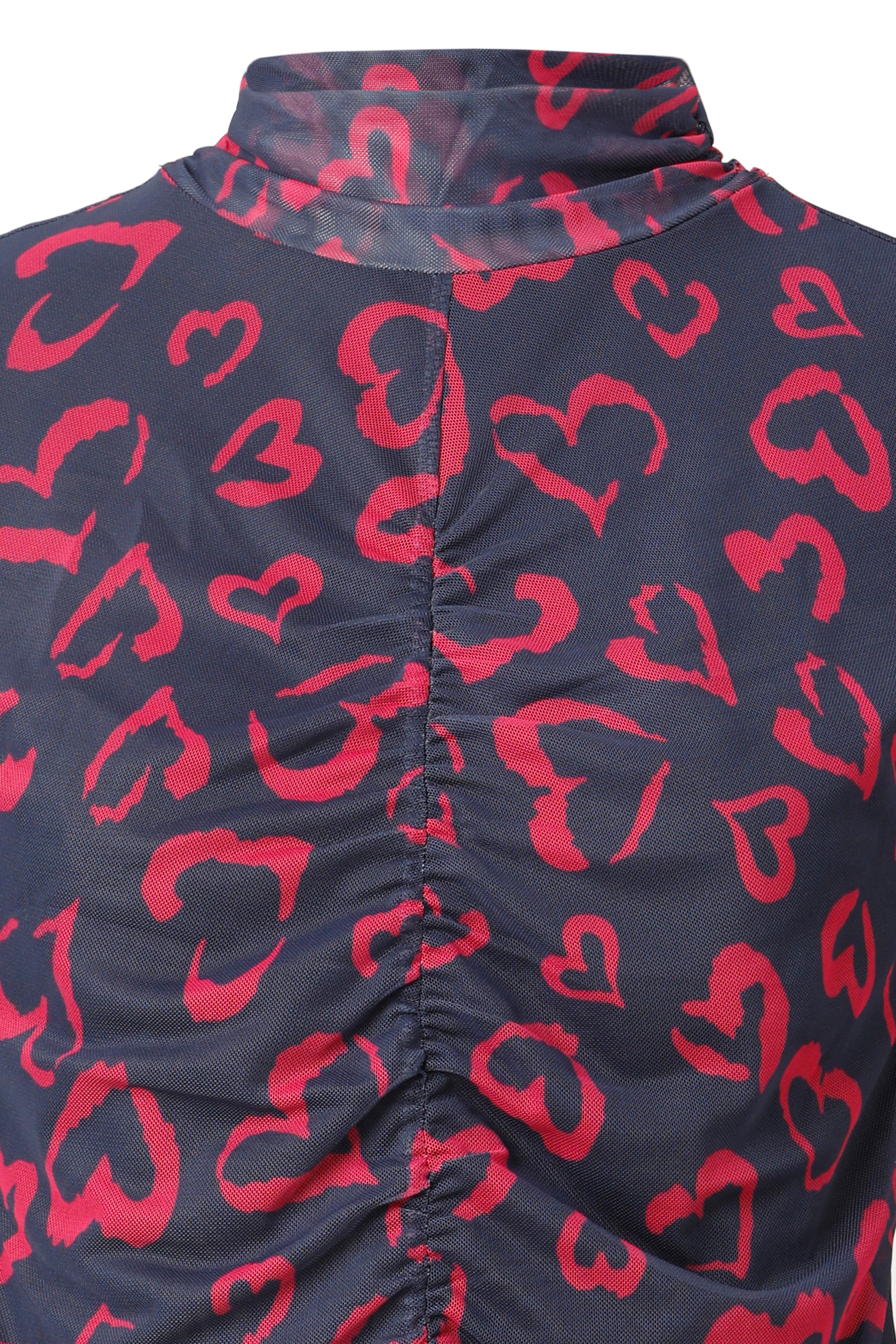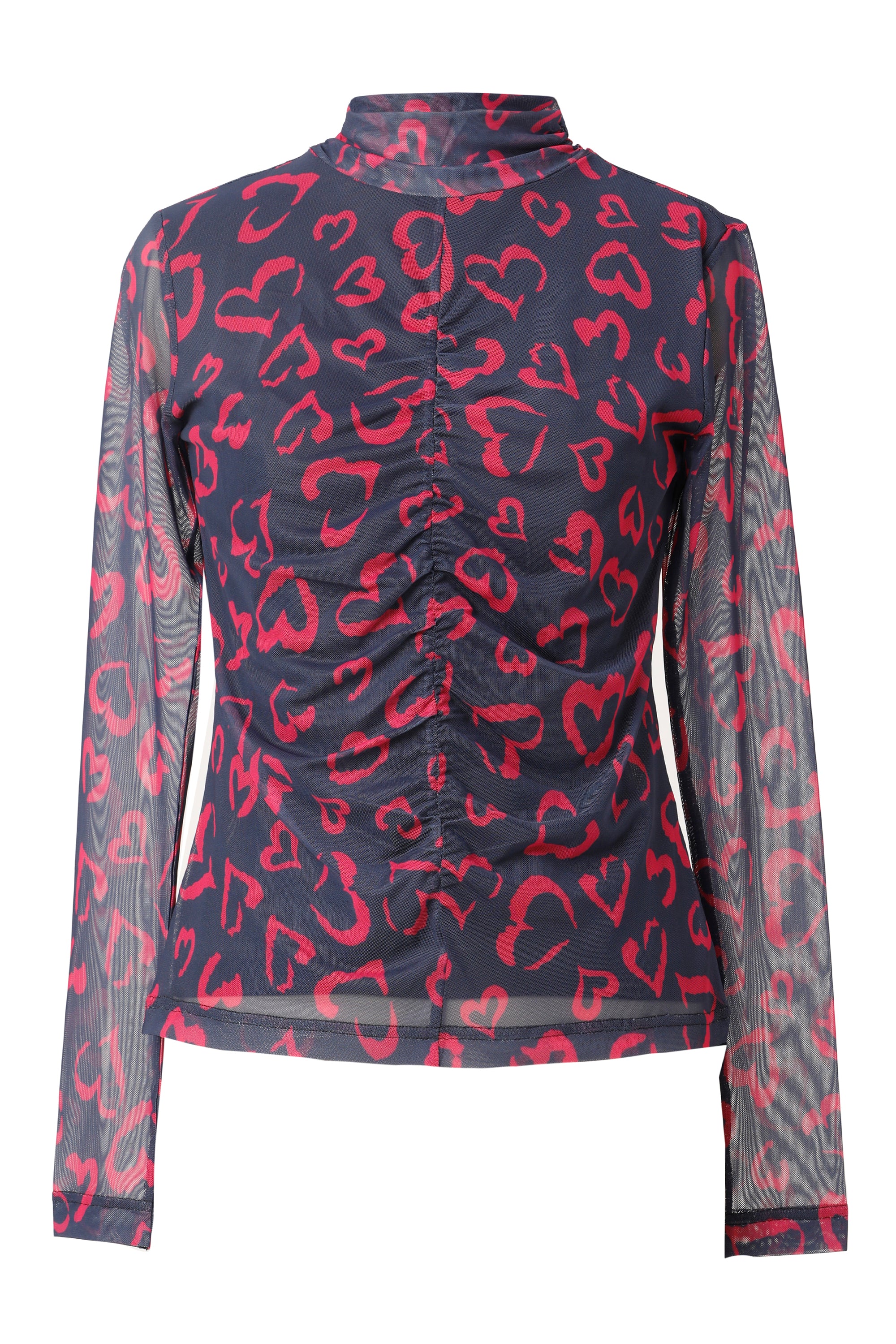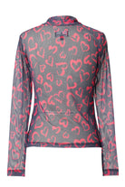 Unveil your vibrant personality and elevate your everyday style with the exquisite Emily Lovelock Iris Mesh Print Top in Slate Blue. This enchanting long-sleeve top is a true testament to playful elegance, featuring an utterly captivating all-over print that dances with abstract heart shapes in dynamic shades of fuchsia and rich red, set against a sophisticated and versatile slate blue base. It's a design that promises to turn heads and spark conversations, allowing you to express your unique sense of fashion with confidence.