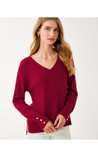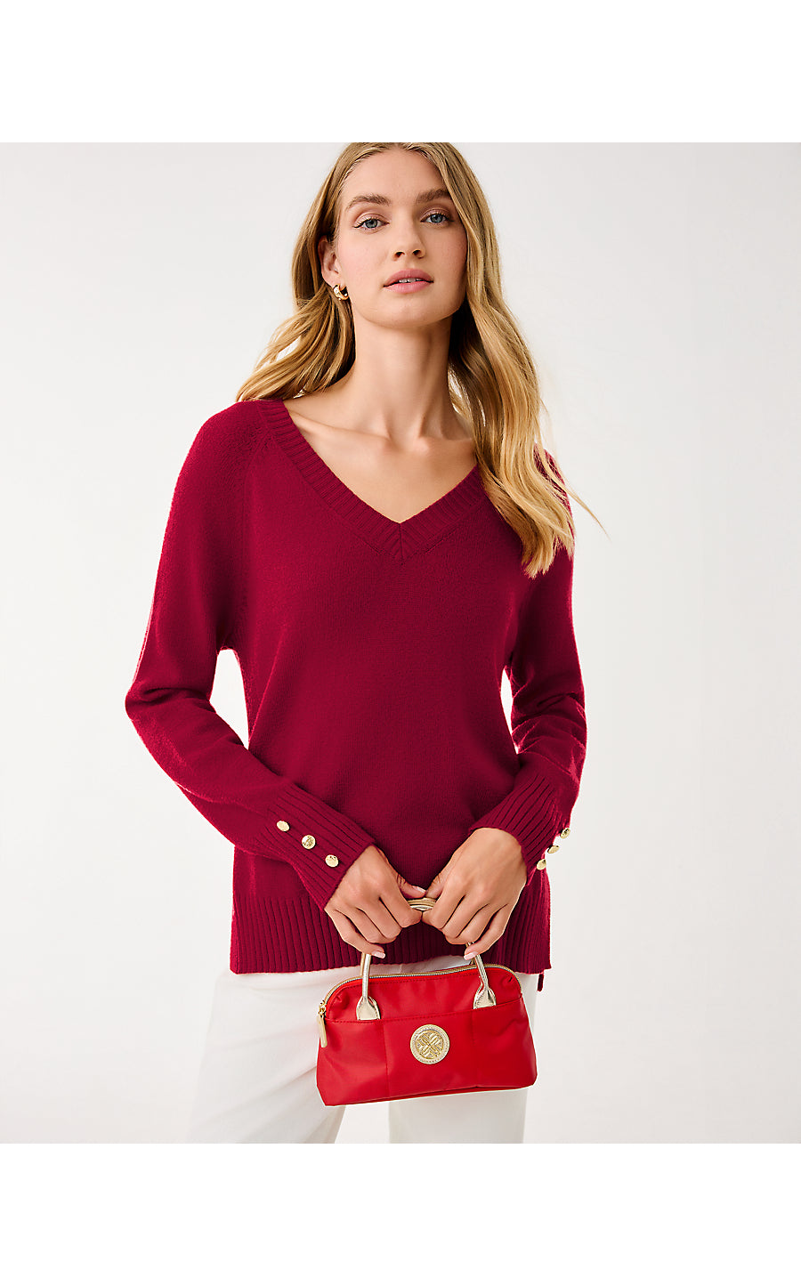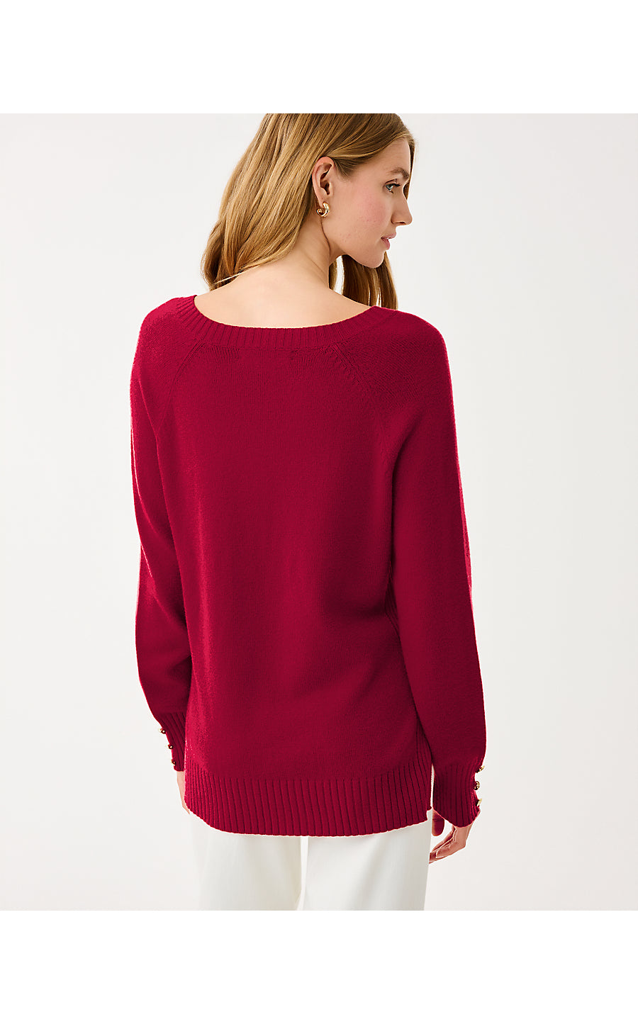 25.5" easy fit long sleeve raglan vneck with side slits, stepped hem, and side seam stitch detail with 3 buttons at cuff.
