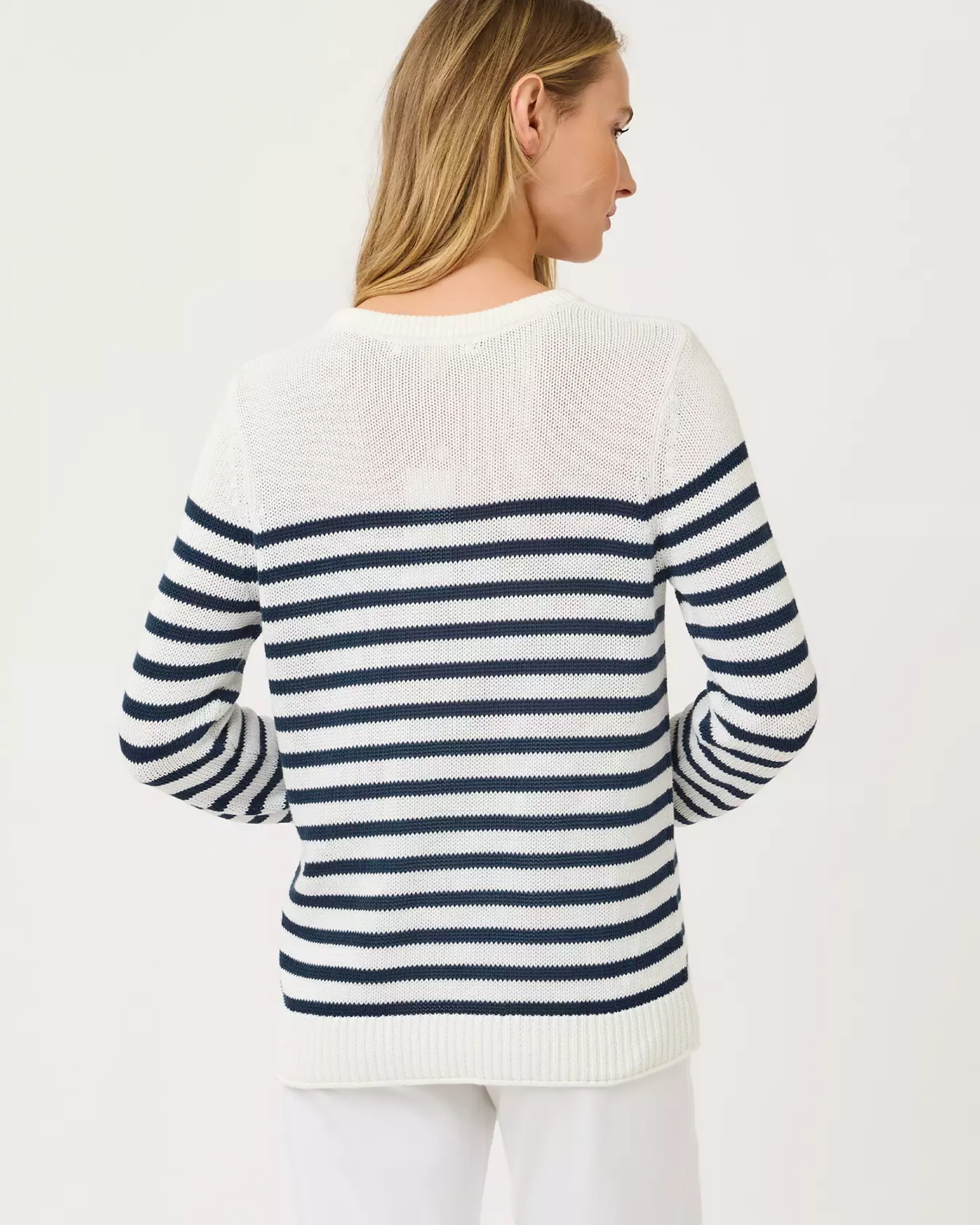 • Fits against body at chest and hip with more room at the waist.