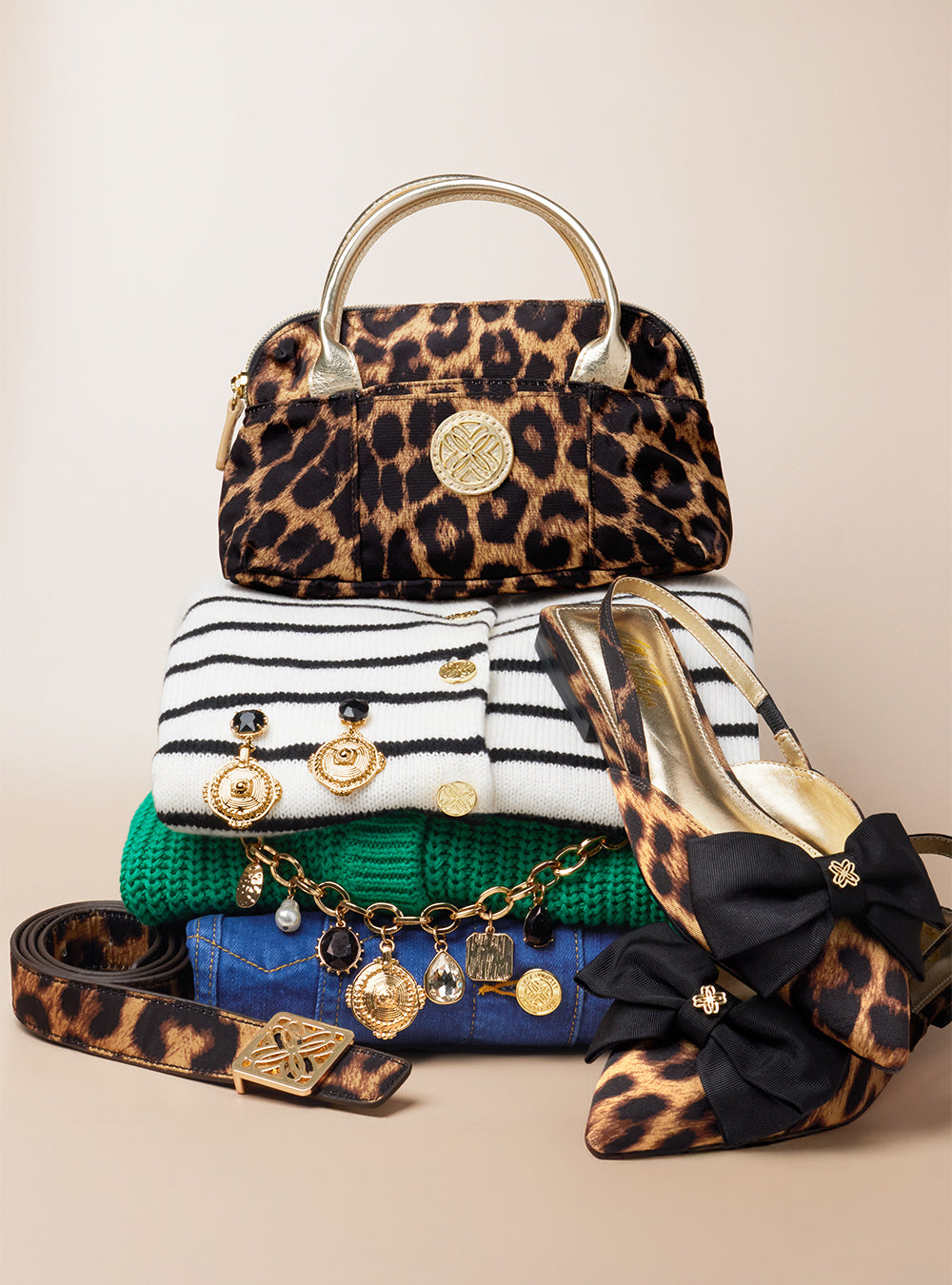 - Leopard printed, top handle mini bag with a front slip pocket, zip top closure, and a detachable logo jacquard webbing crossbody strap.
