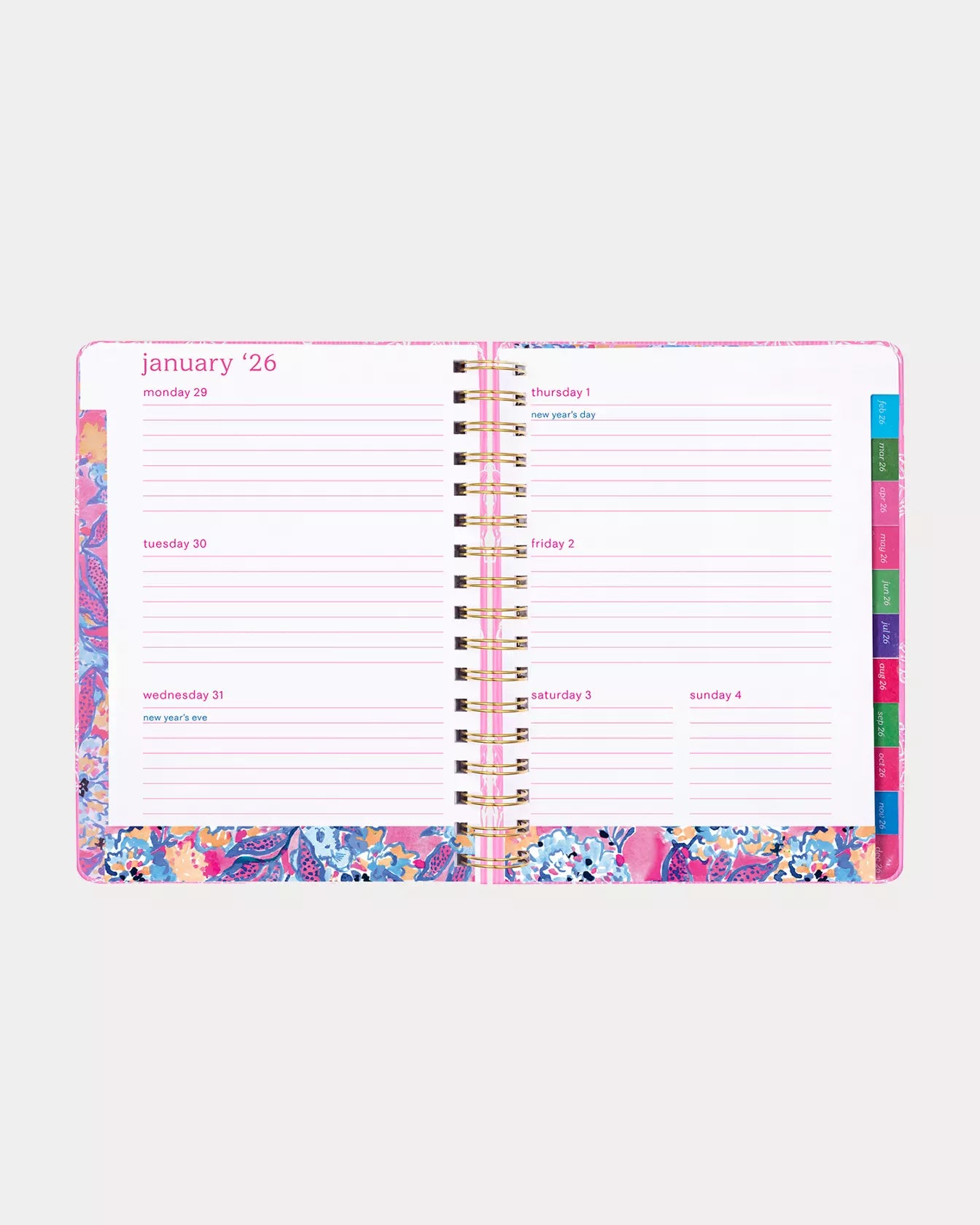 - 17 month large agenda (August 2025 - December 2026) complete with gold details and hand painted interior art.