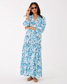 Malone 3/4 Sleeve Maxi Dress - Resort White Seashell Splendor