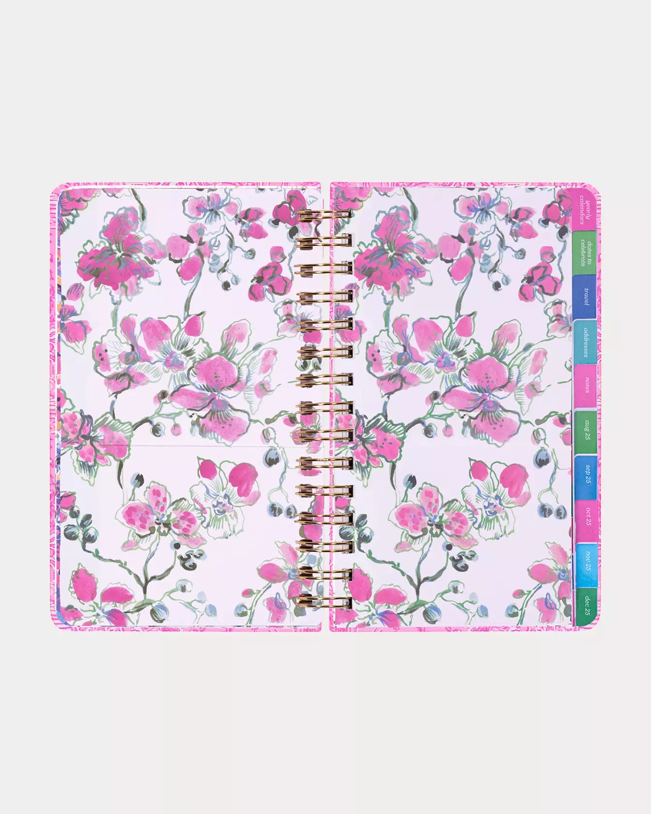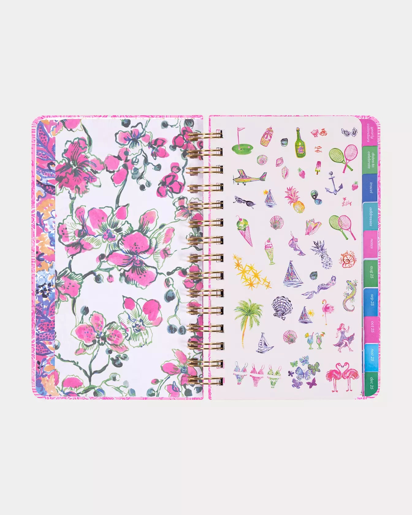 - 17 month medium agenda (August 2025 - December 2026) with stickers and pages for travel, dates to celebrate, addresses, and notes.