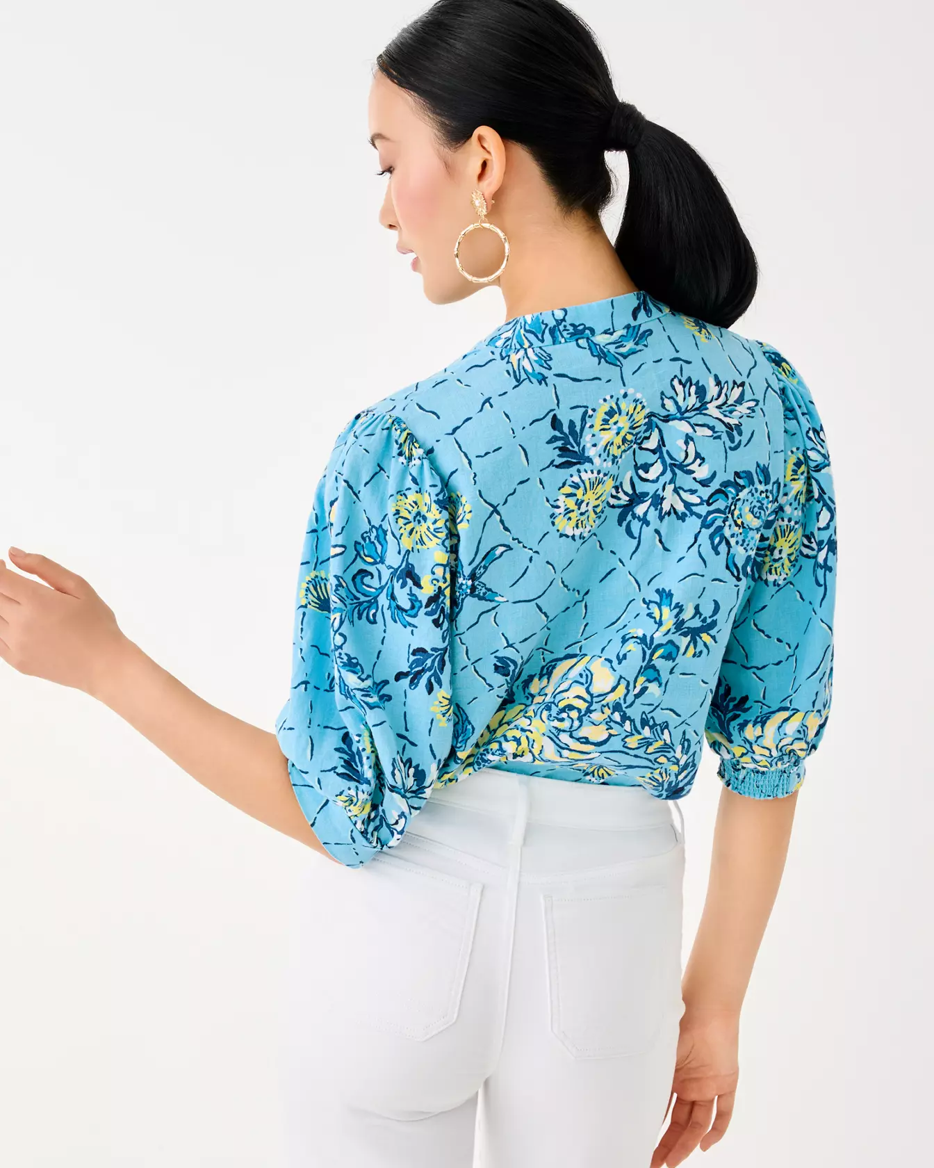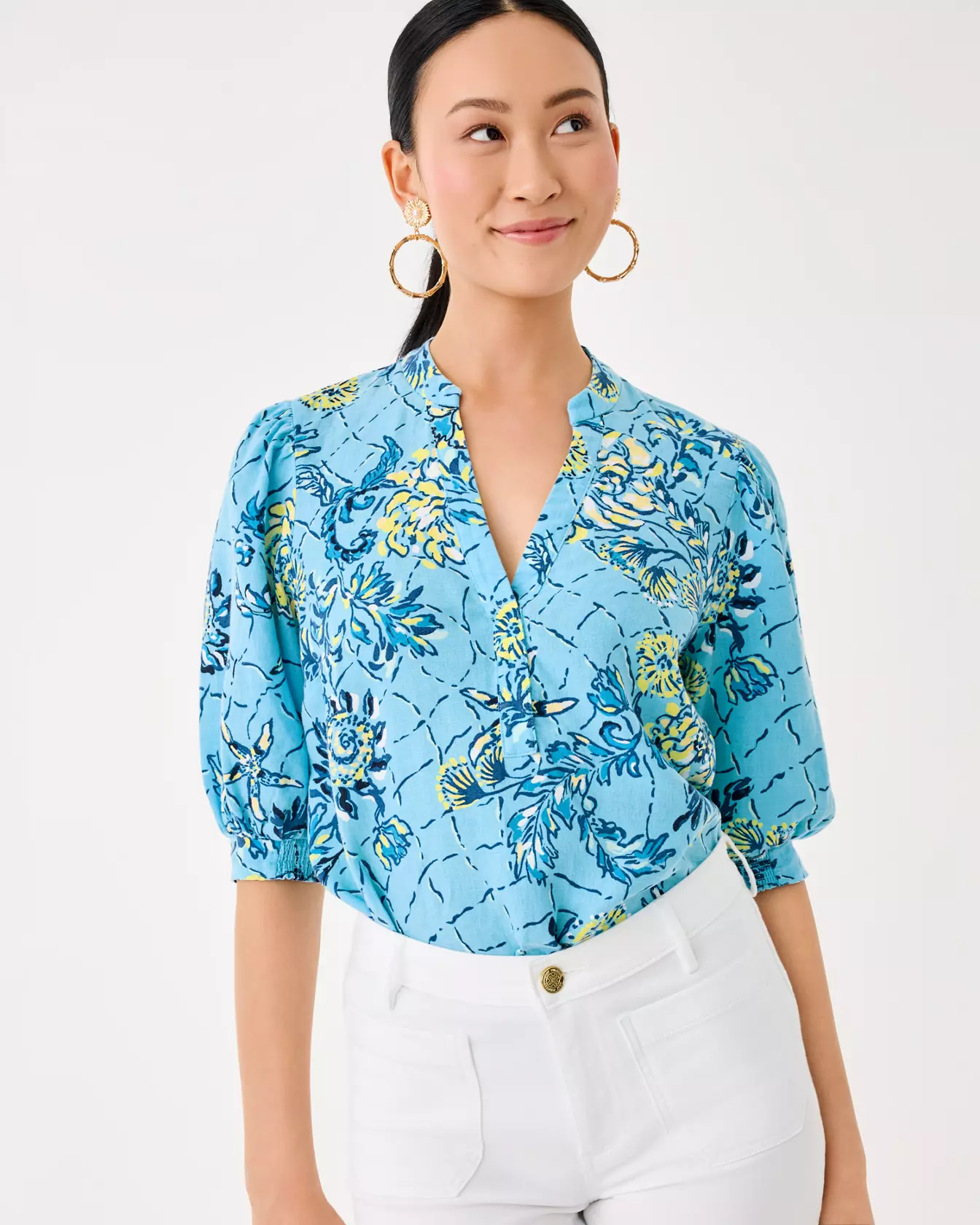 Mialeigh Linen Top - Bellevue Blue Breakers Beach