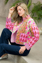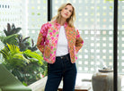 Meet your new favorite statement layer — the Patchwork Quilted Jacket. Designed in a stunning mix of vibrant tropical prints, this lightweight jacket combines effortless style with everyday comfort. The colorful patchwork detailing and soft quilted texture make it perfect for transitional weather, while the relaxed fit and open front create a flattering, easy-to-wear silhouette. Pair it with a crisp white tee and denim for a polished yet playful look that feels perfectly Palm Beach.