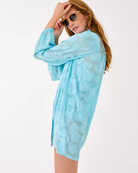 Sadira Long Sleeve Cover-Up - Bellevue Blue Tangerine Dream Poly Clip