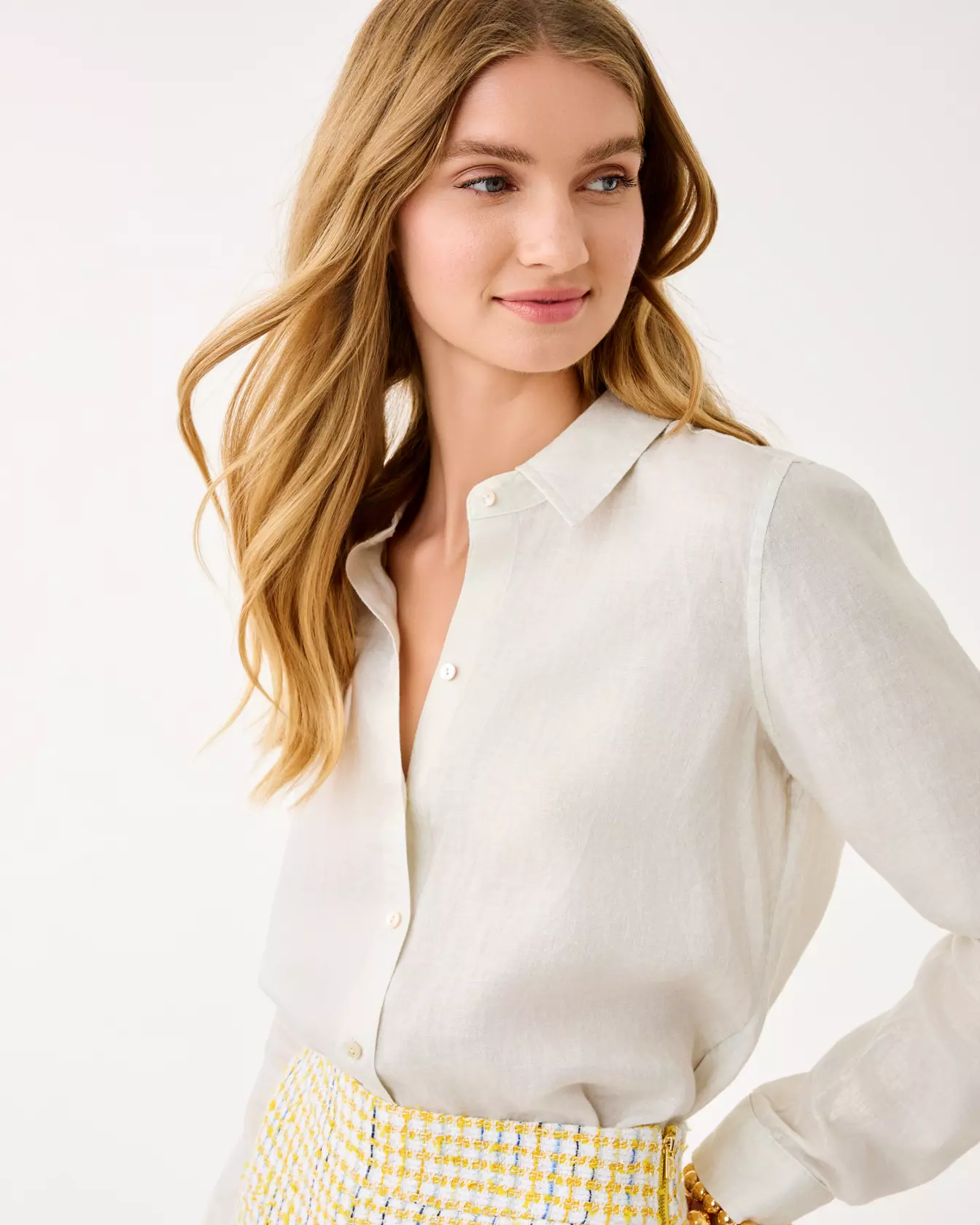 Sea View Metallic Linen Button Down - Gold Foiled Coconut