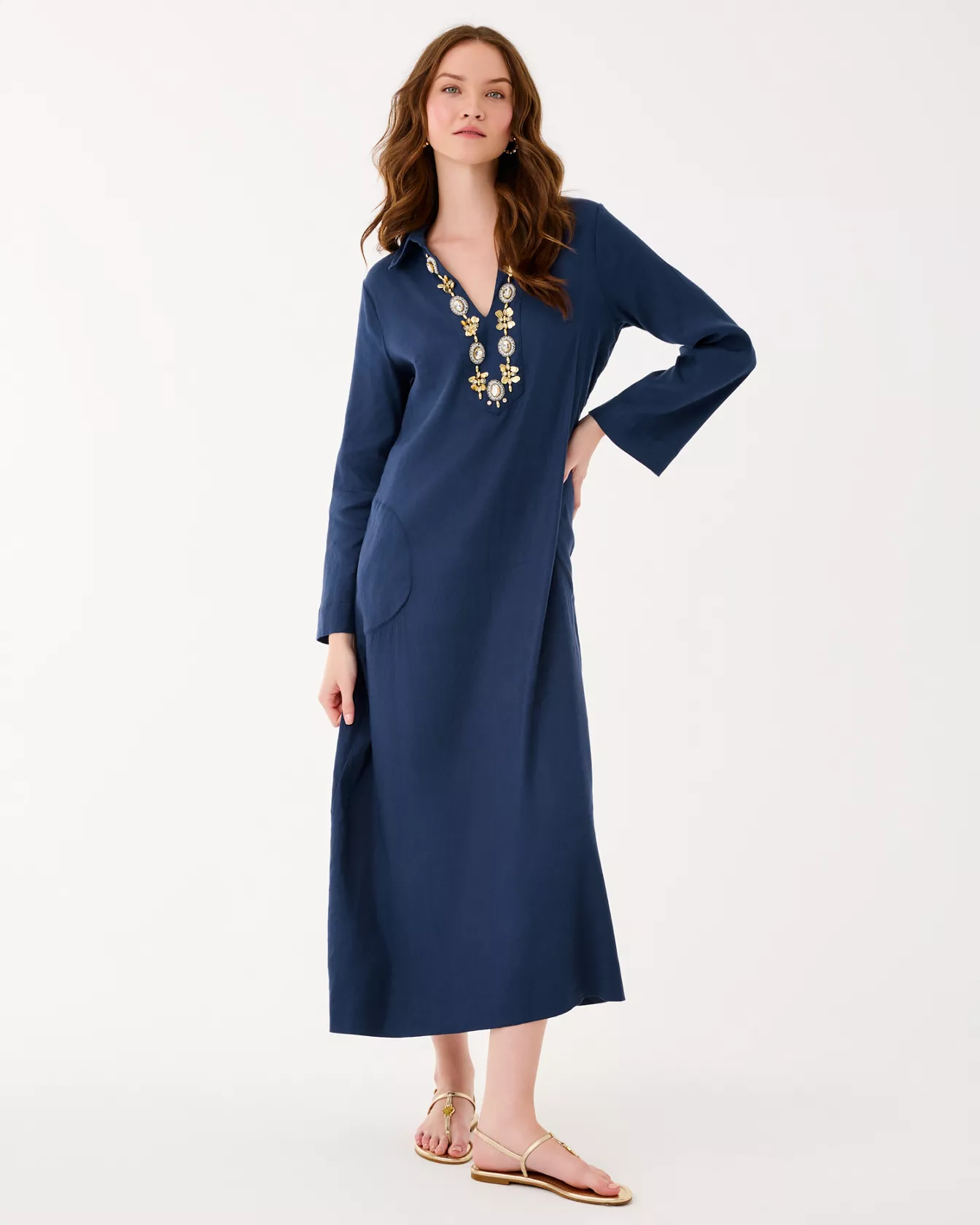Elevate your everyday wardrobe with our classically chic stretch linen Simona Dress.