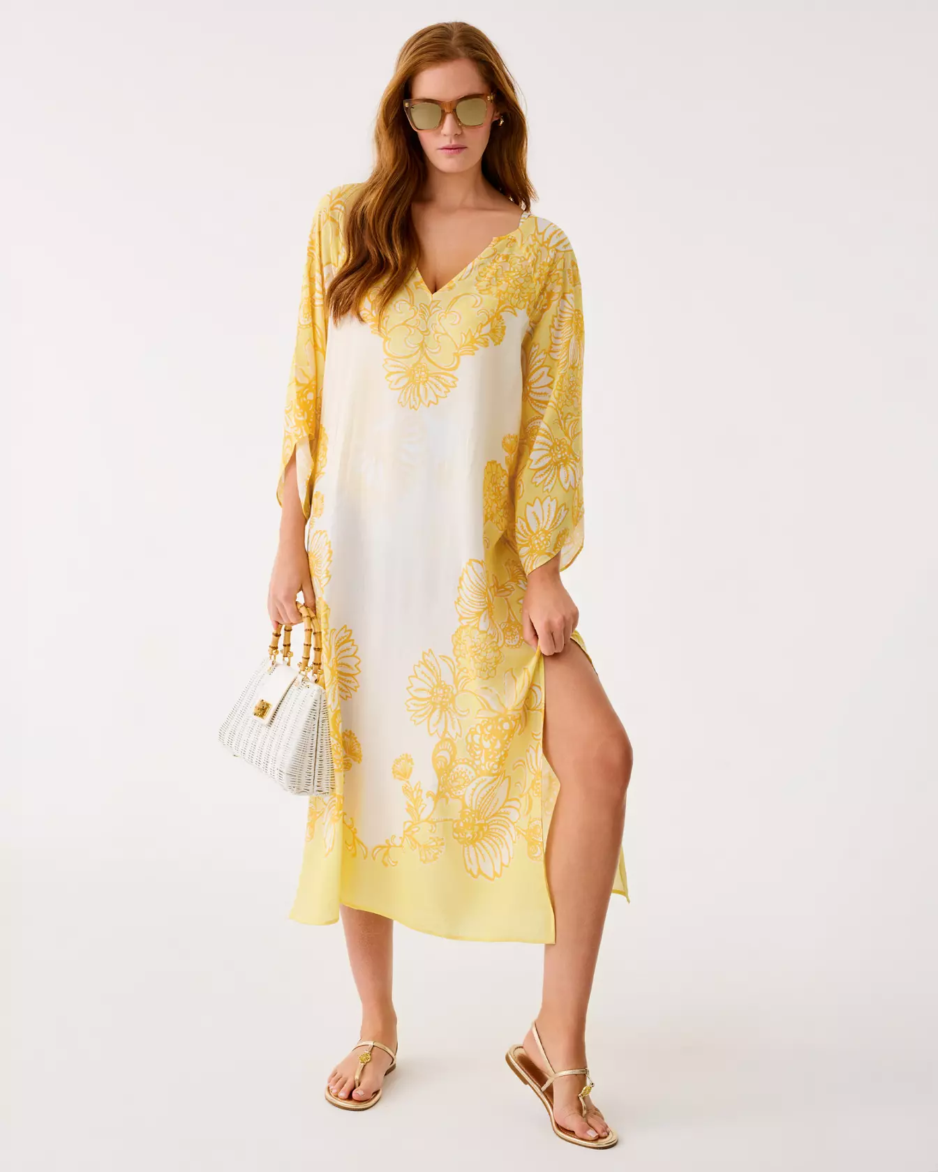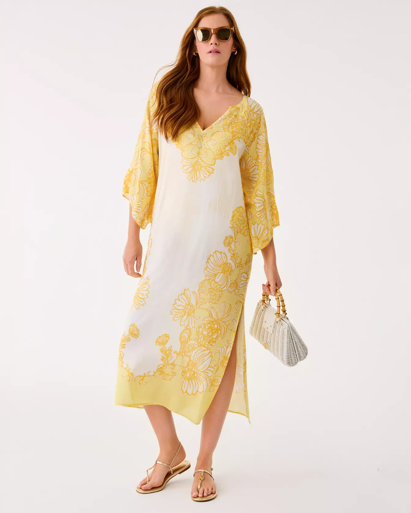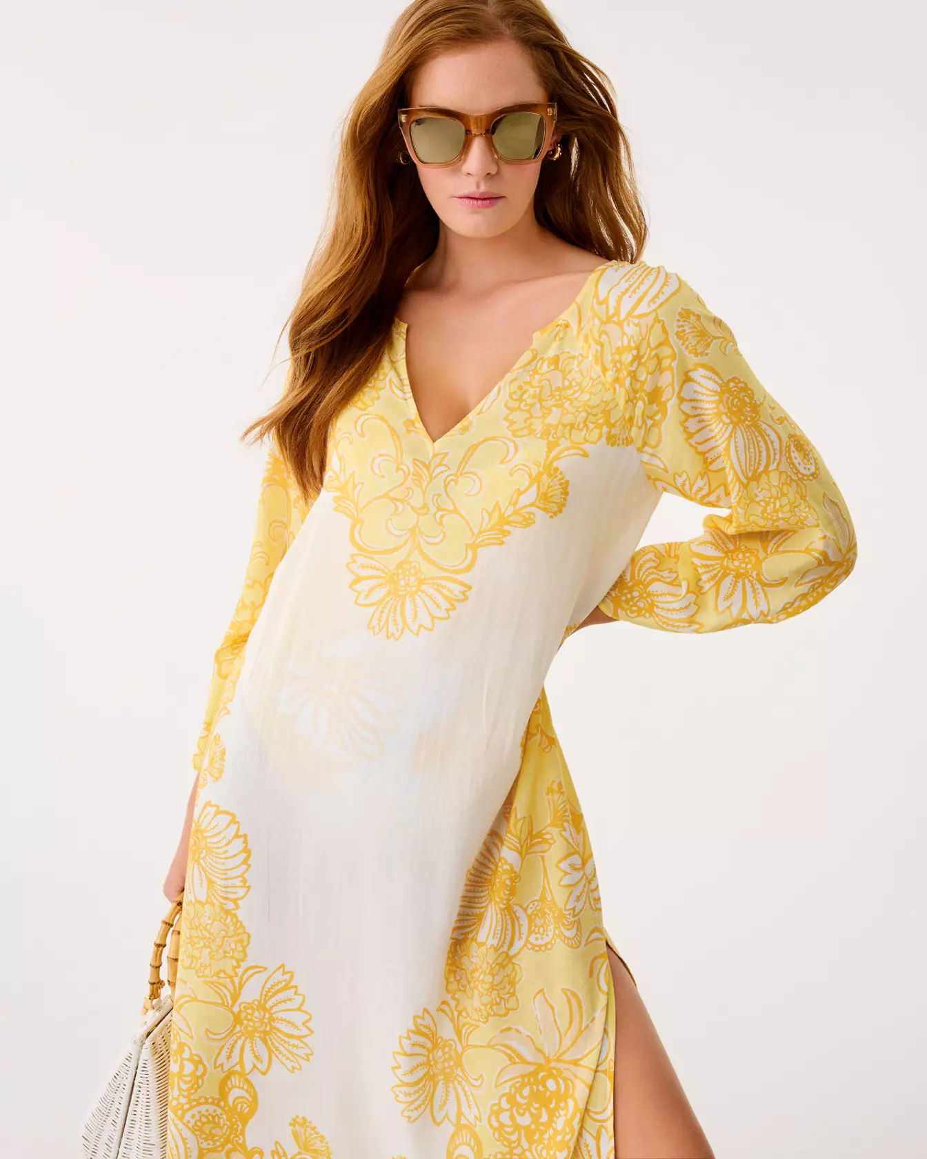 Tialah Maxi Caftan Cover-Up - Golden Glow Juicy Story Engineered Coverup
