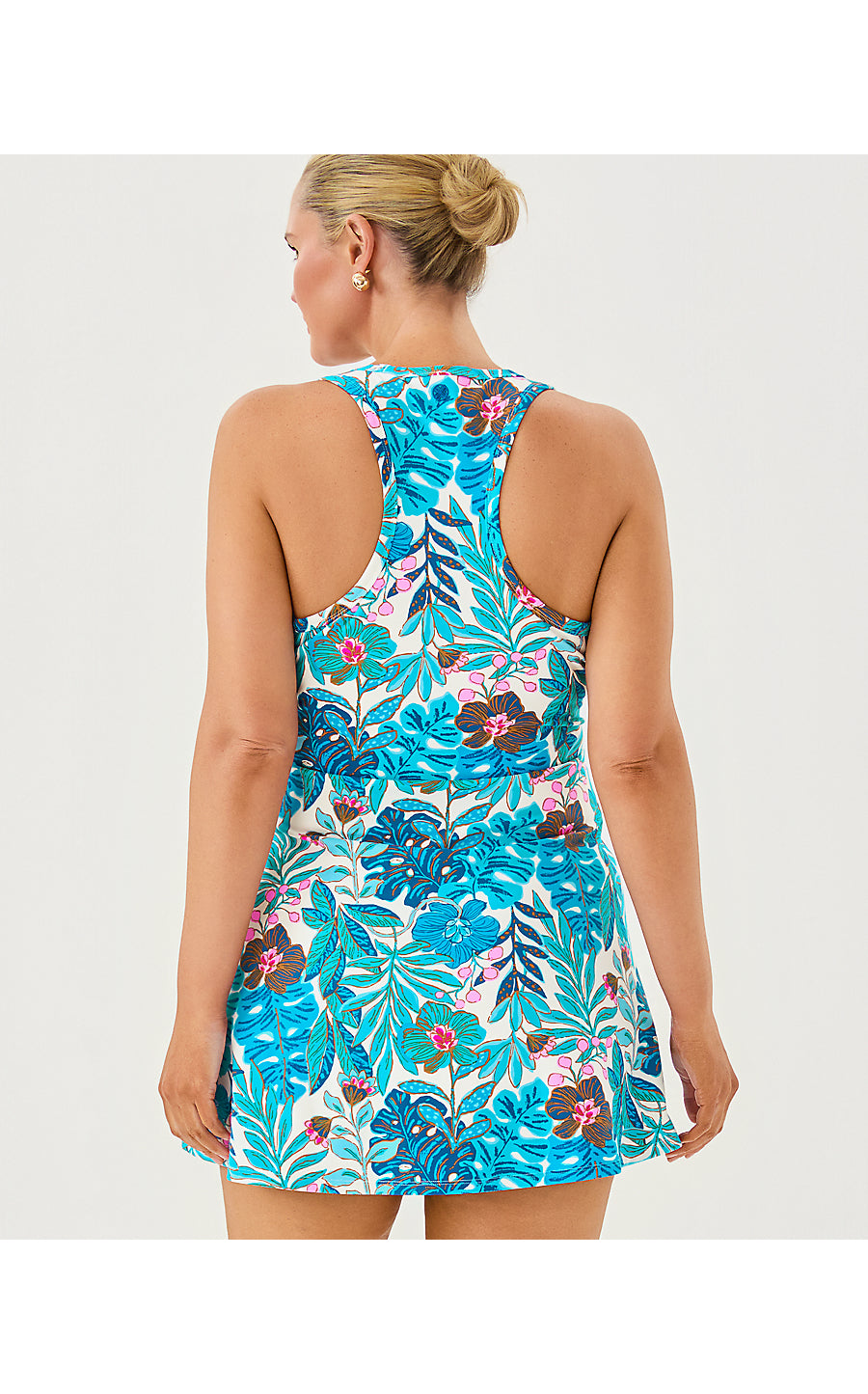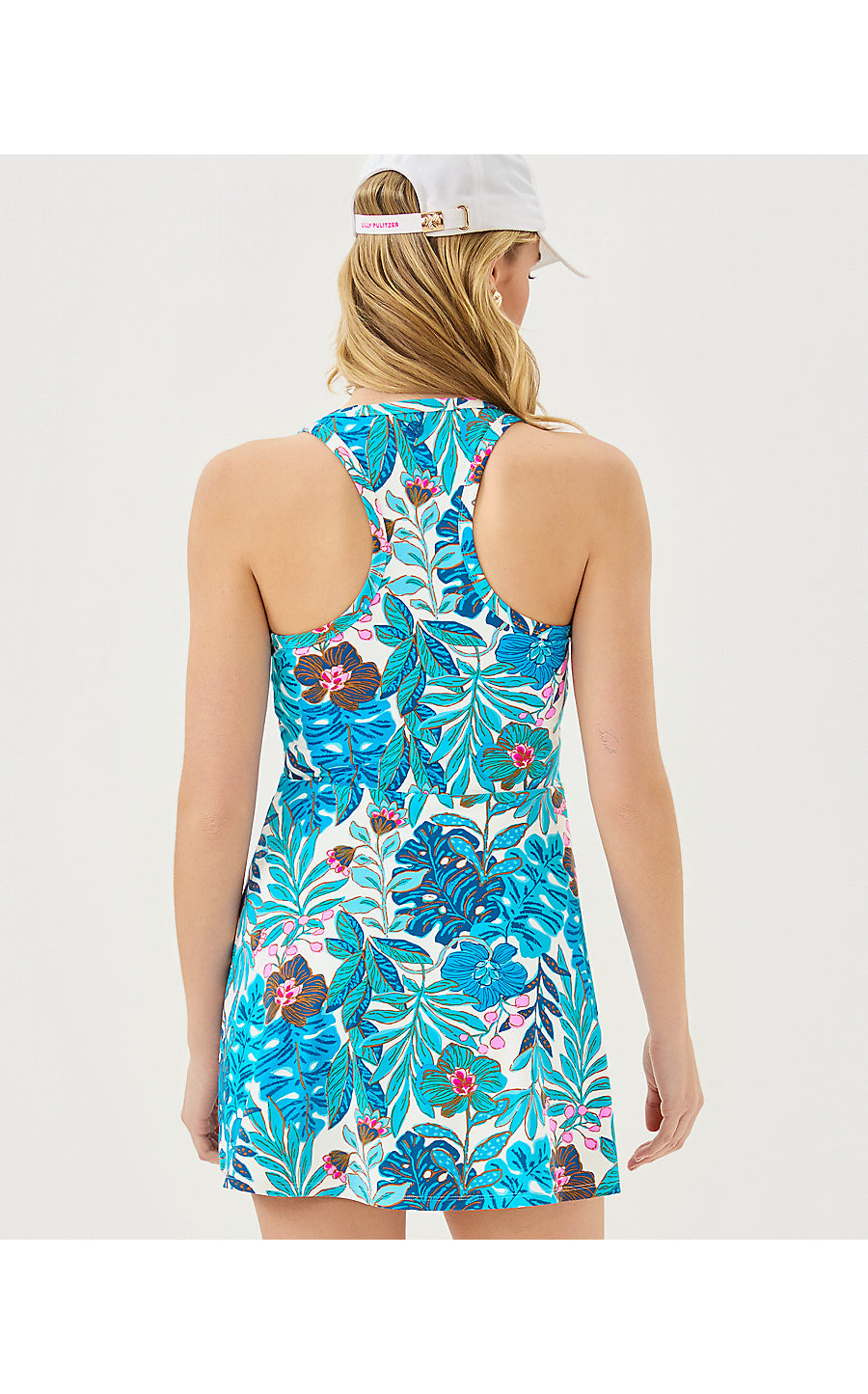 UPF 50+ Luxletic Forehand Active Dress - Breezy Aqua Best Fronds Forever
