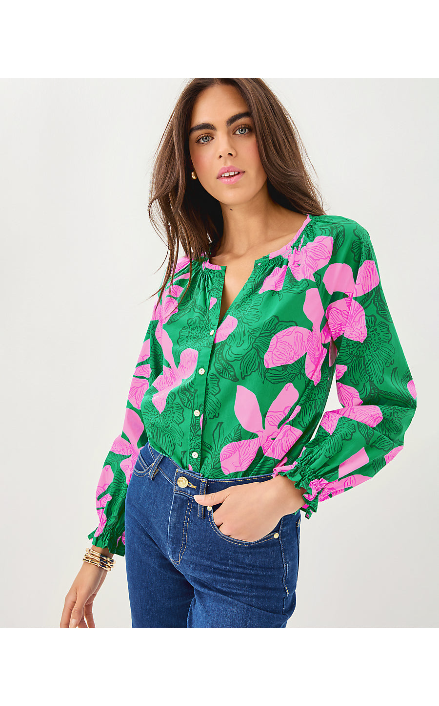 Aldina Button Down Top - Kitts Green Sunset Shadows