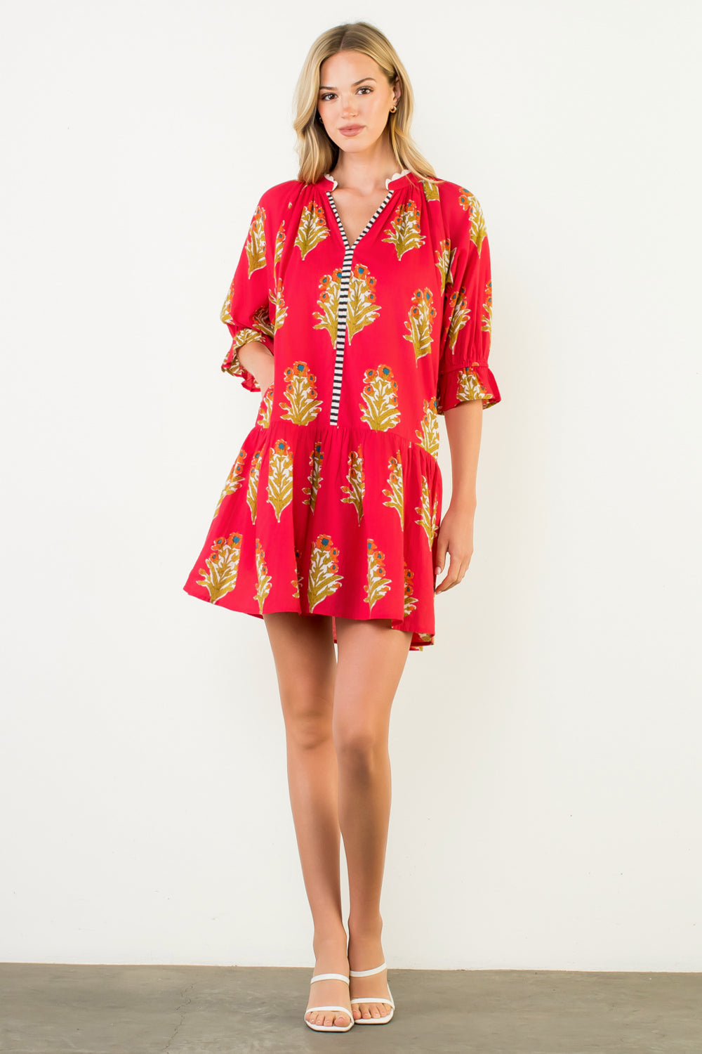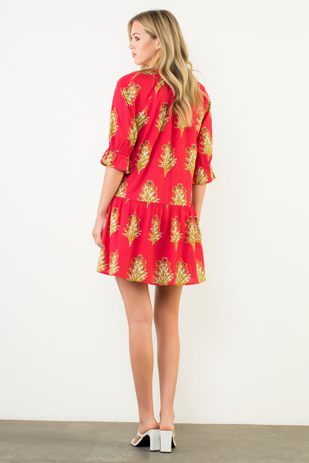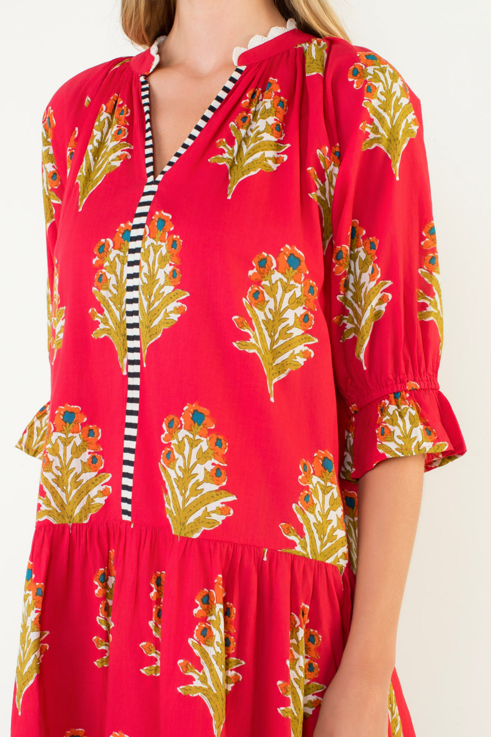Puff Sleeve Floral Detailed Midi Dress - Beige