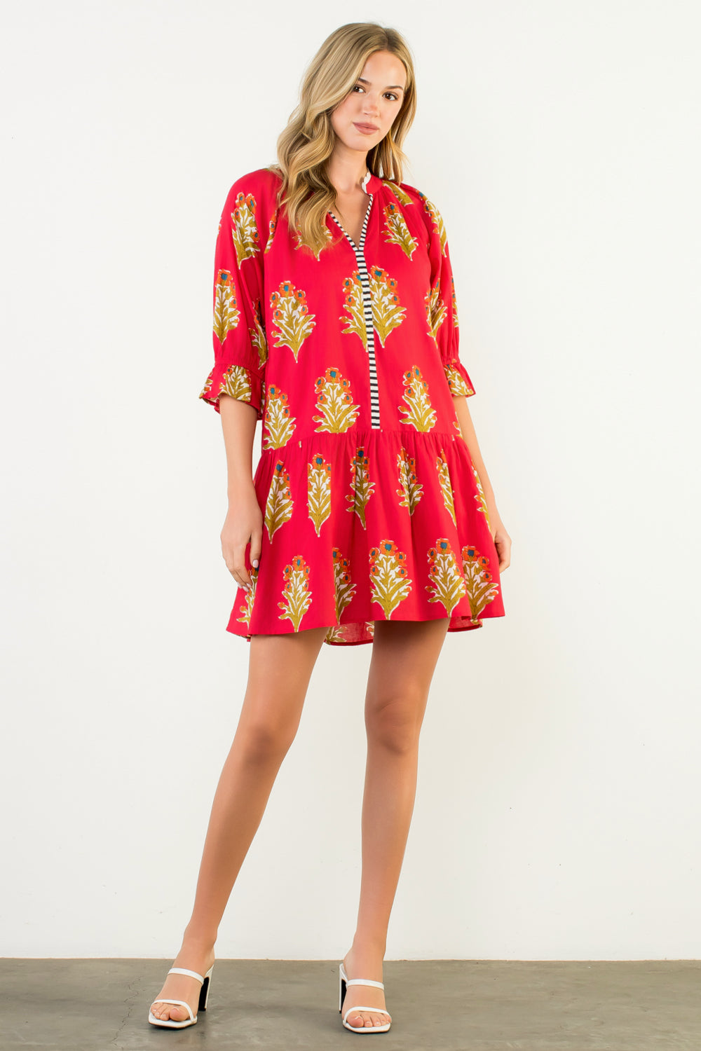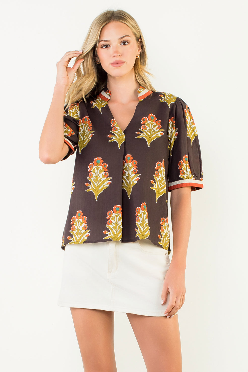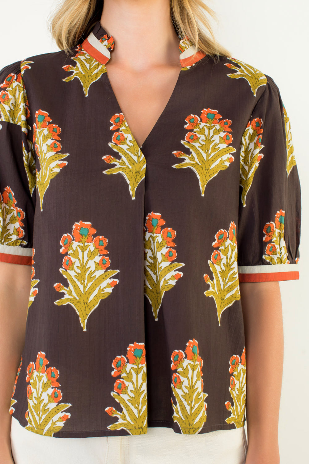 Puff Sleeve Floral Detailed Midi Dress - Beige