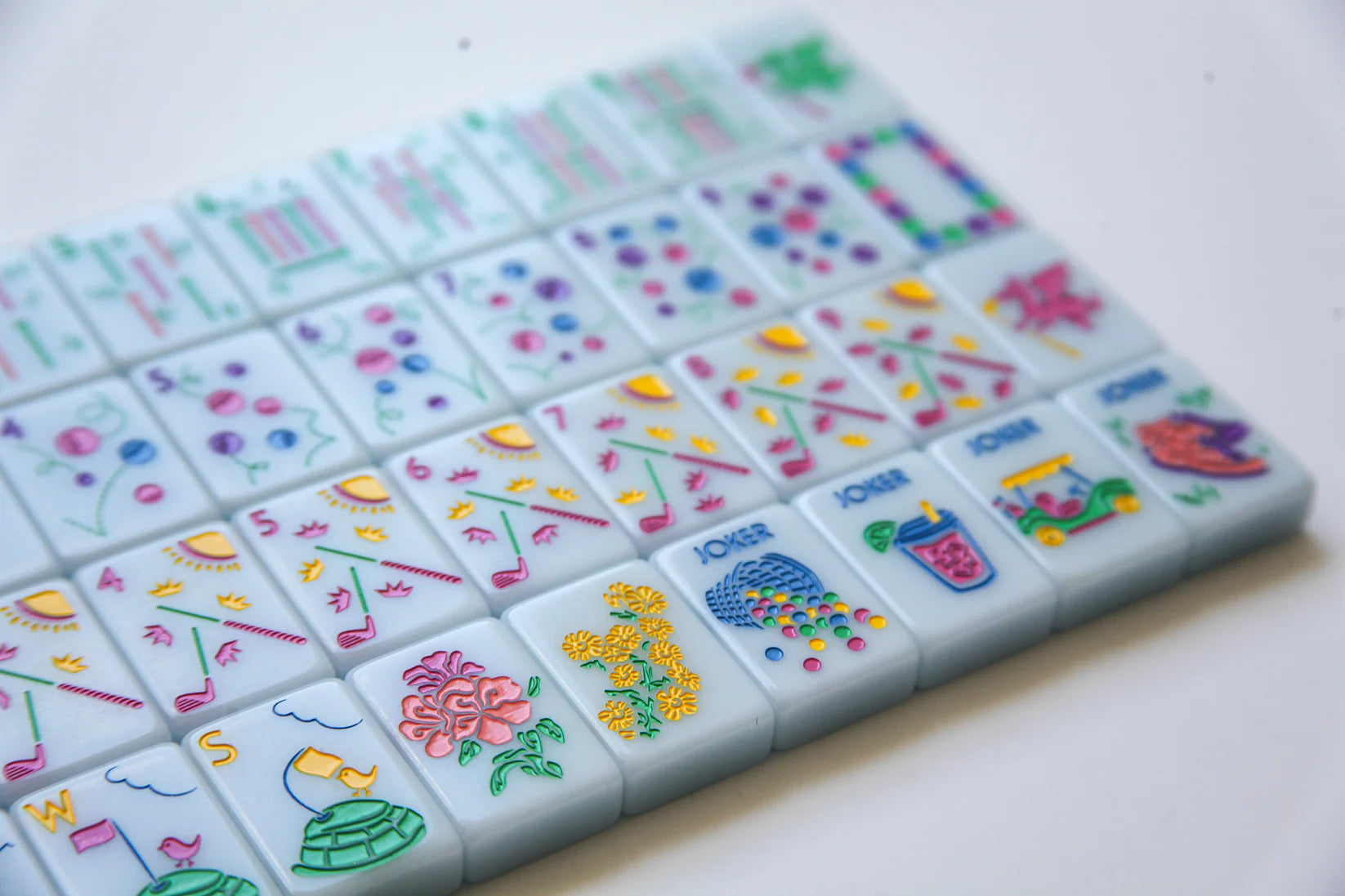 - Complete Mahjong Country Club custom tile set with hand-illustrated, high-contrast artwork