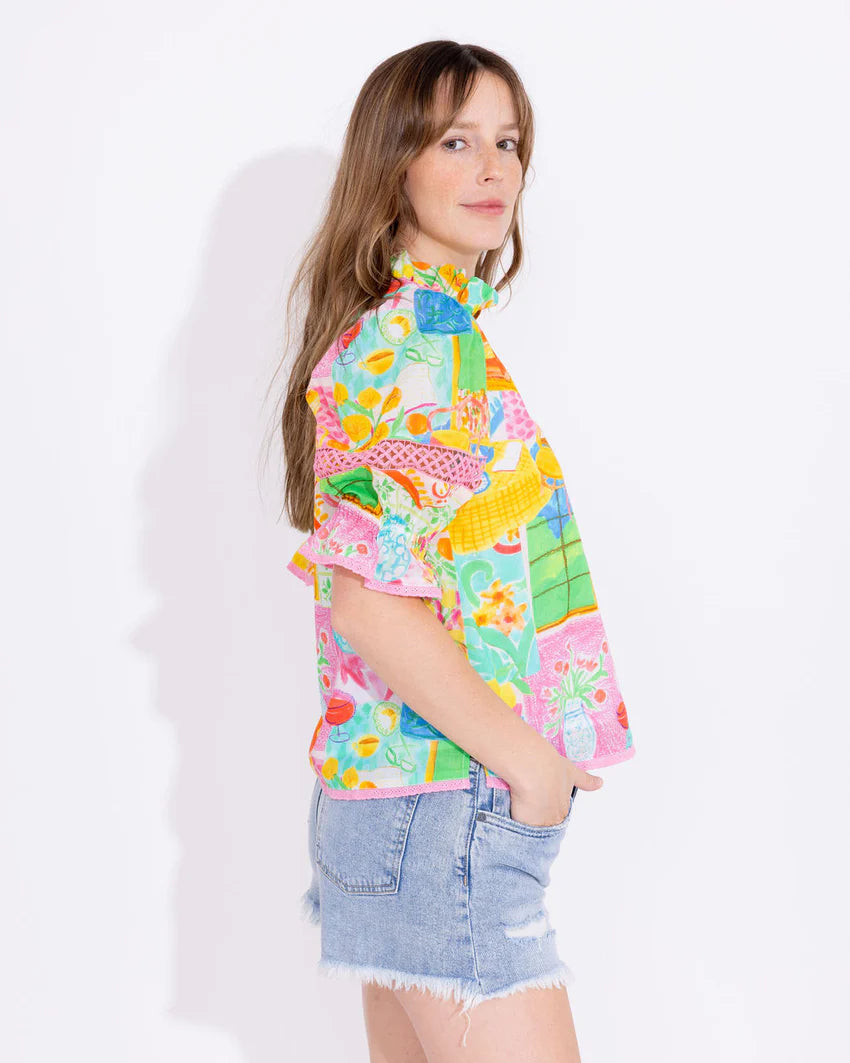 Look your chicest in the Lottie Top. It's perfect for a busy day, with its fun detailing and print. So don't just blend in - show off! The Lottie top checks all the boxes. She is the perfect summer top with a classic v-neck and puff sleeves.