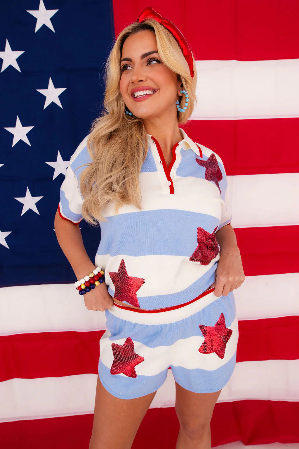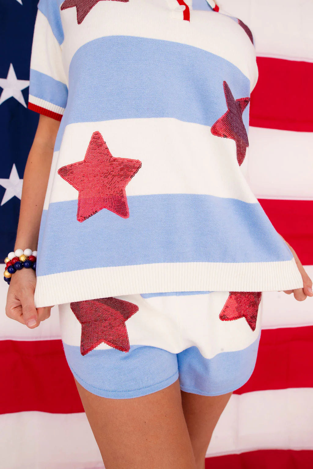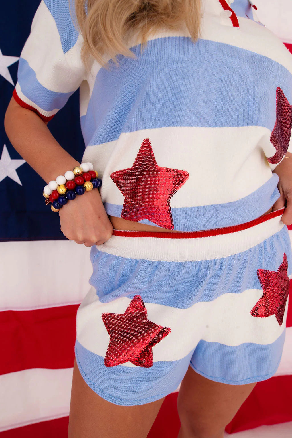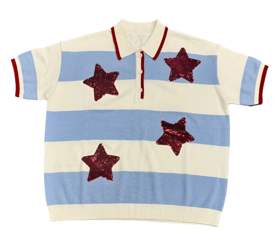 - Crafted from a soft, lightweight knit fabric, this knit top features a Nantucket Stripe print with sequin red stars