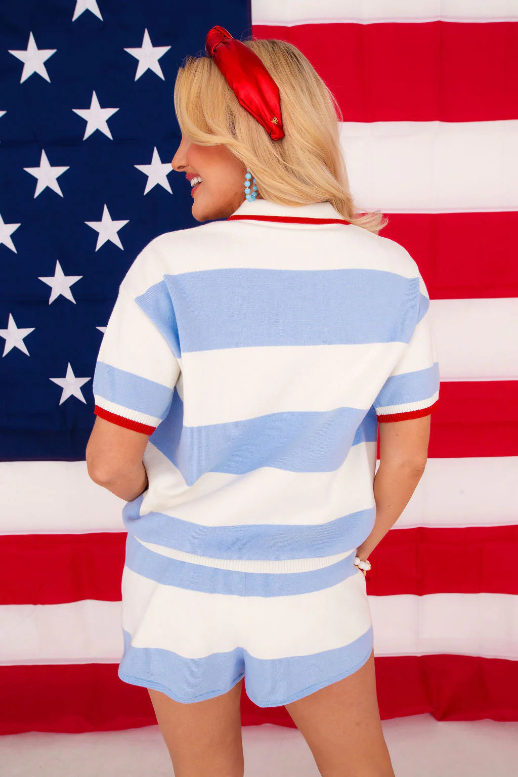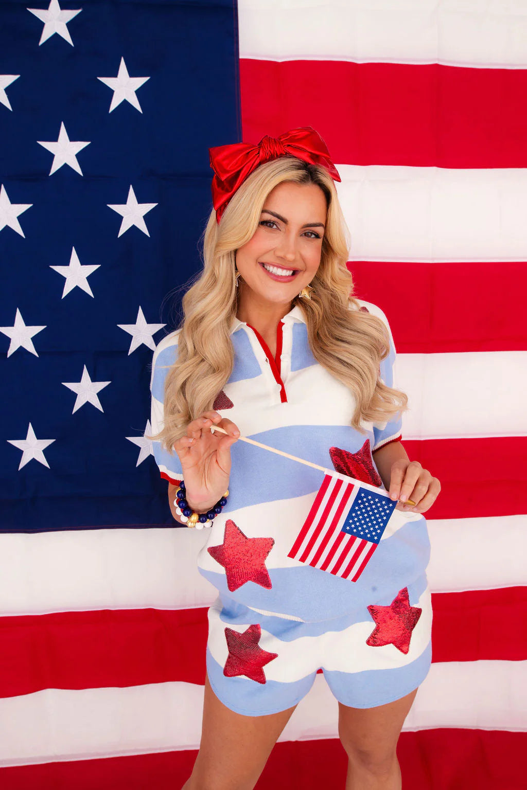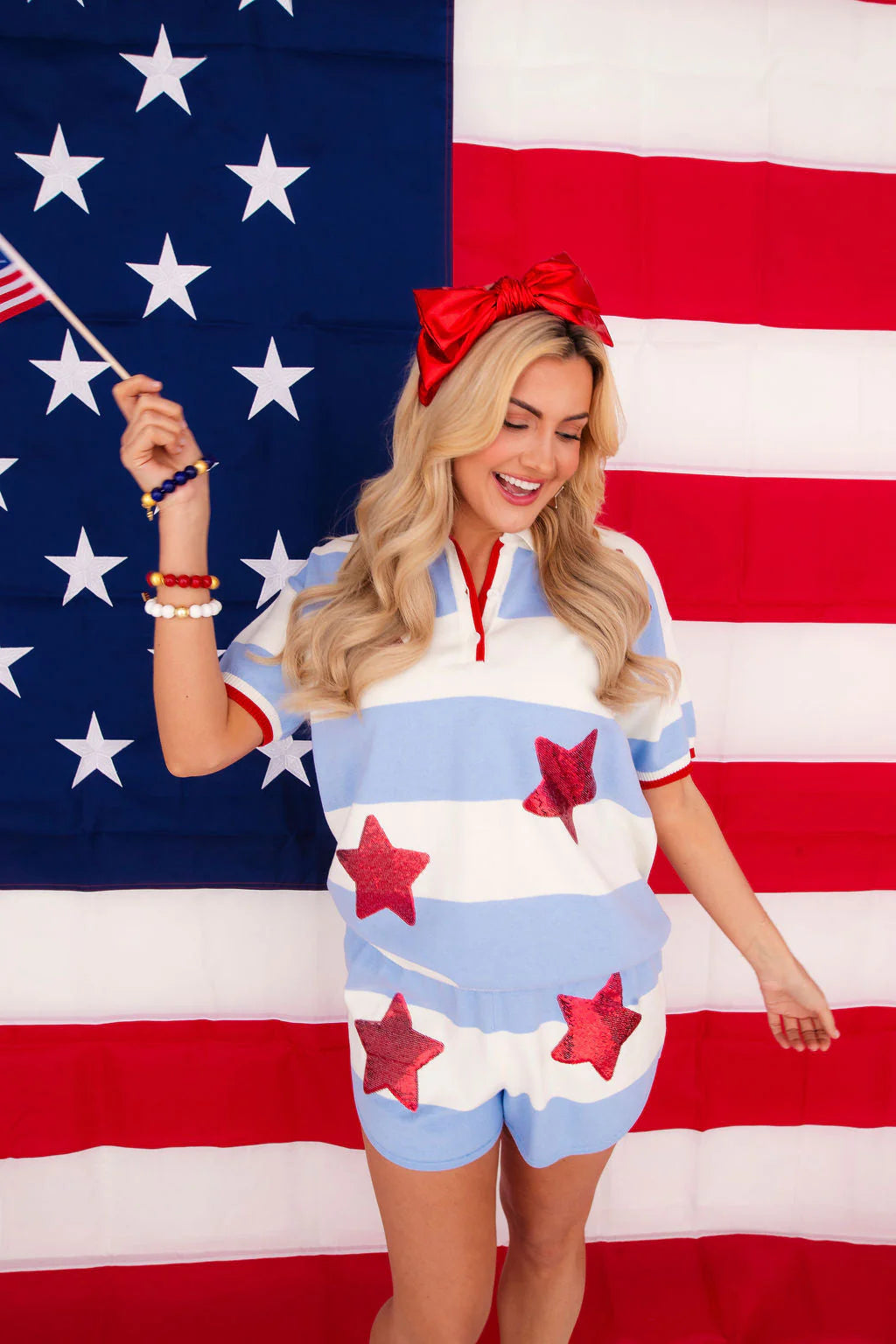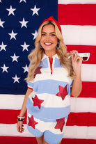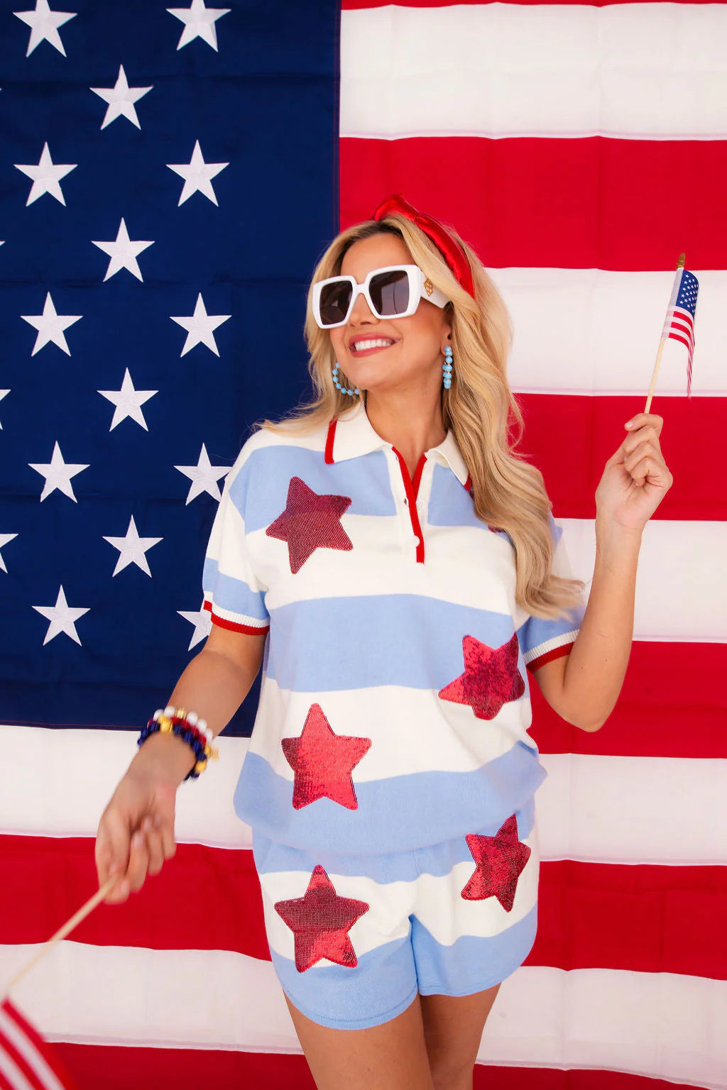 - Crafted from a soft, lightweight knit fabric, this knit top features a Nantucket Stripe print with sequin red stars