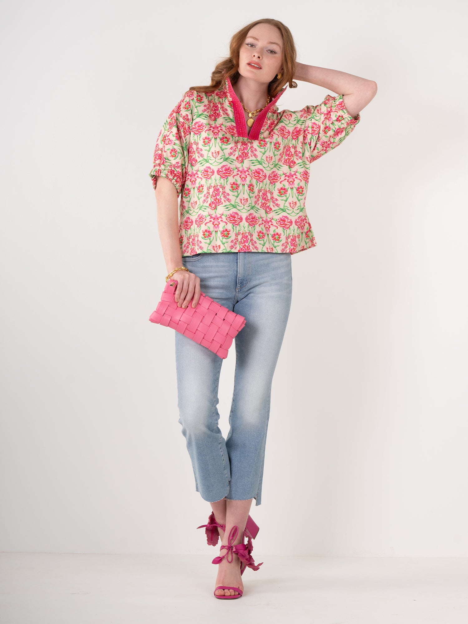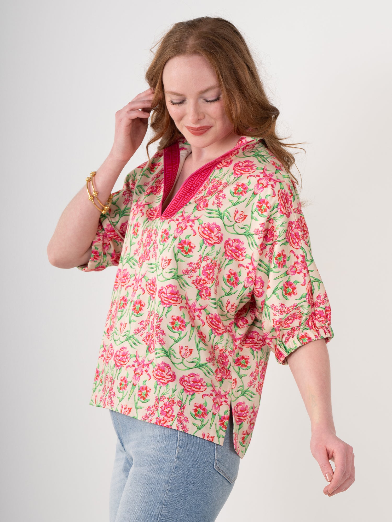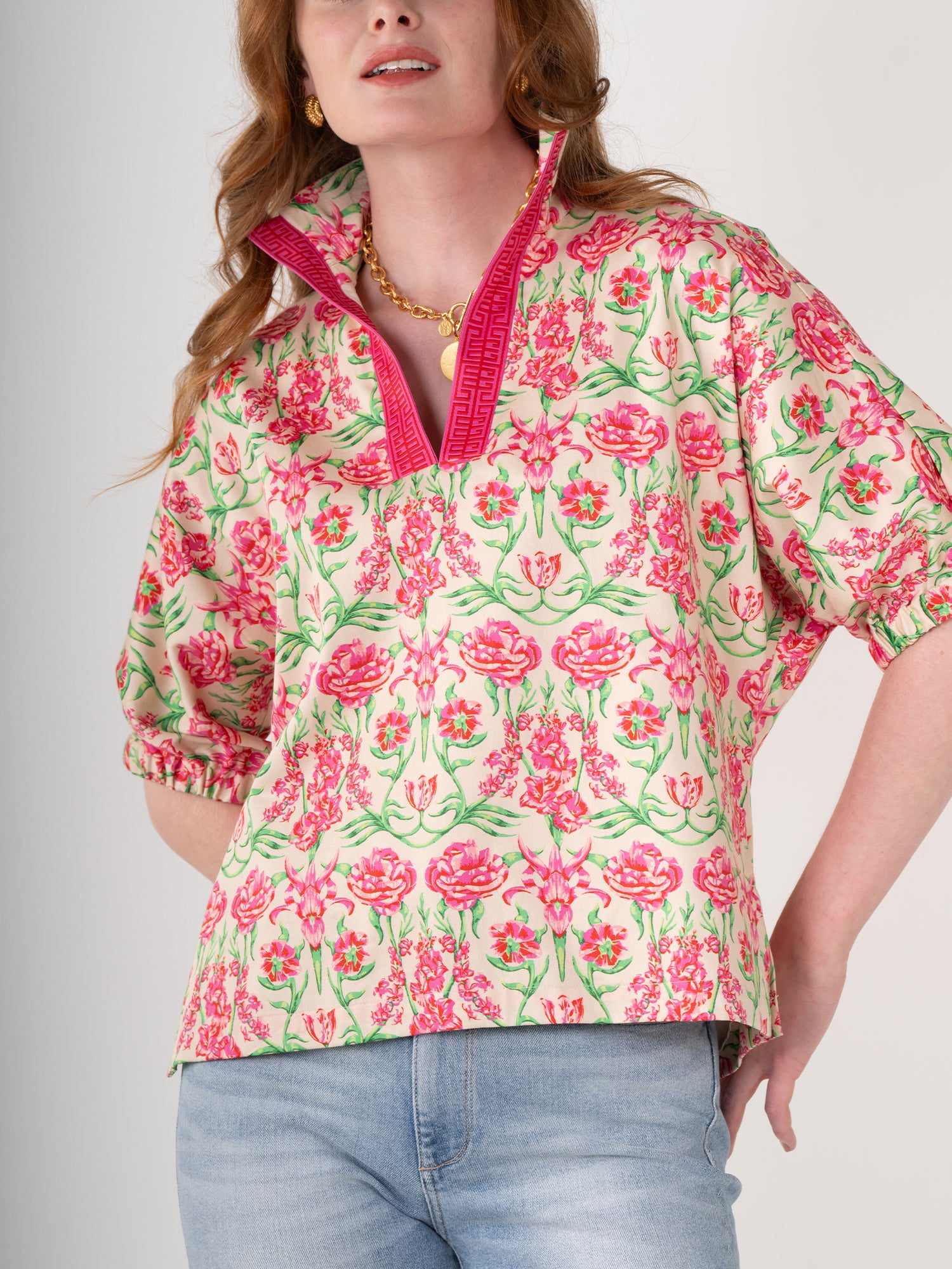 Blending classic style with bold color, the beloved Poppy Top is now available in our signature shade of green. Designed to effortlessly elevate your everyday style, this top features a classic popped collar, elastic dolman sleeves, and relaxed silhouette. Crafted in our best selling cotton poplin fabric most loved for its blend of casual comfort and refined versatility. Wear with your everyday blue jeans, or pair with our Joy Jogger in Sandshell Vegan Leather for added texture and elevation!
