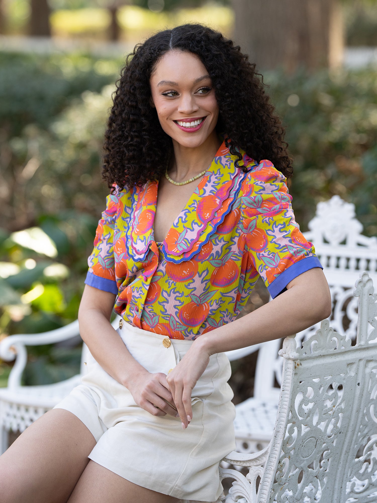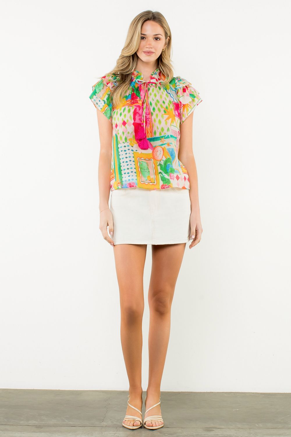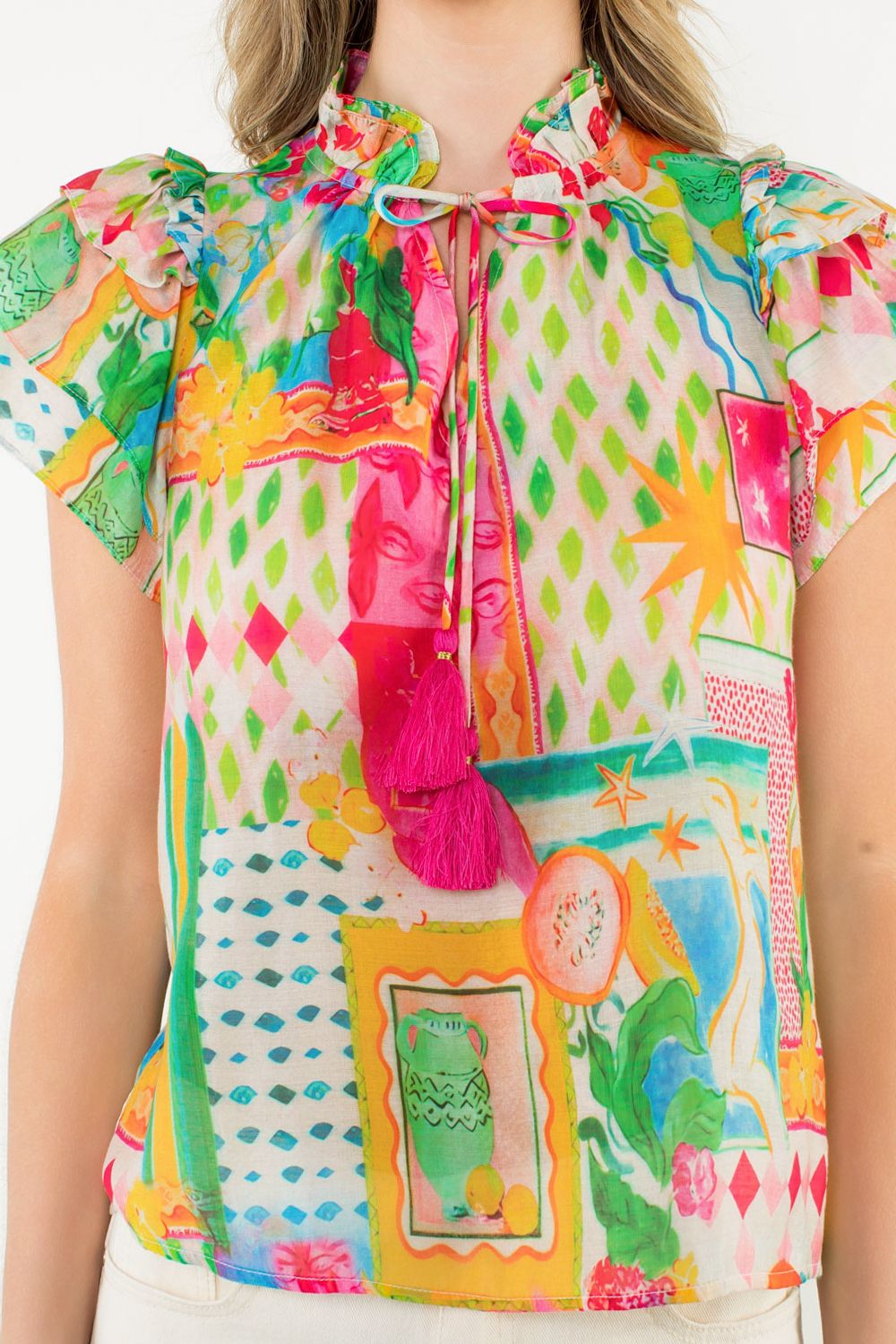 Puff Sleeve Floral Embroidered Top - Mustard Yellow/Multi