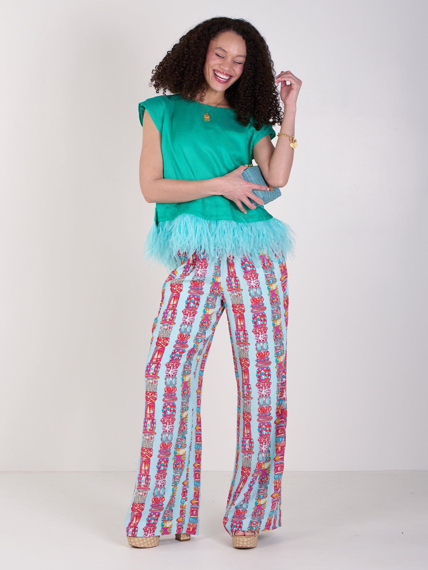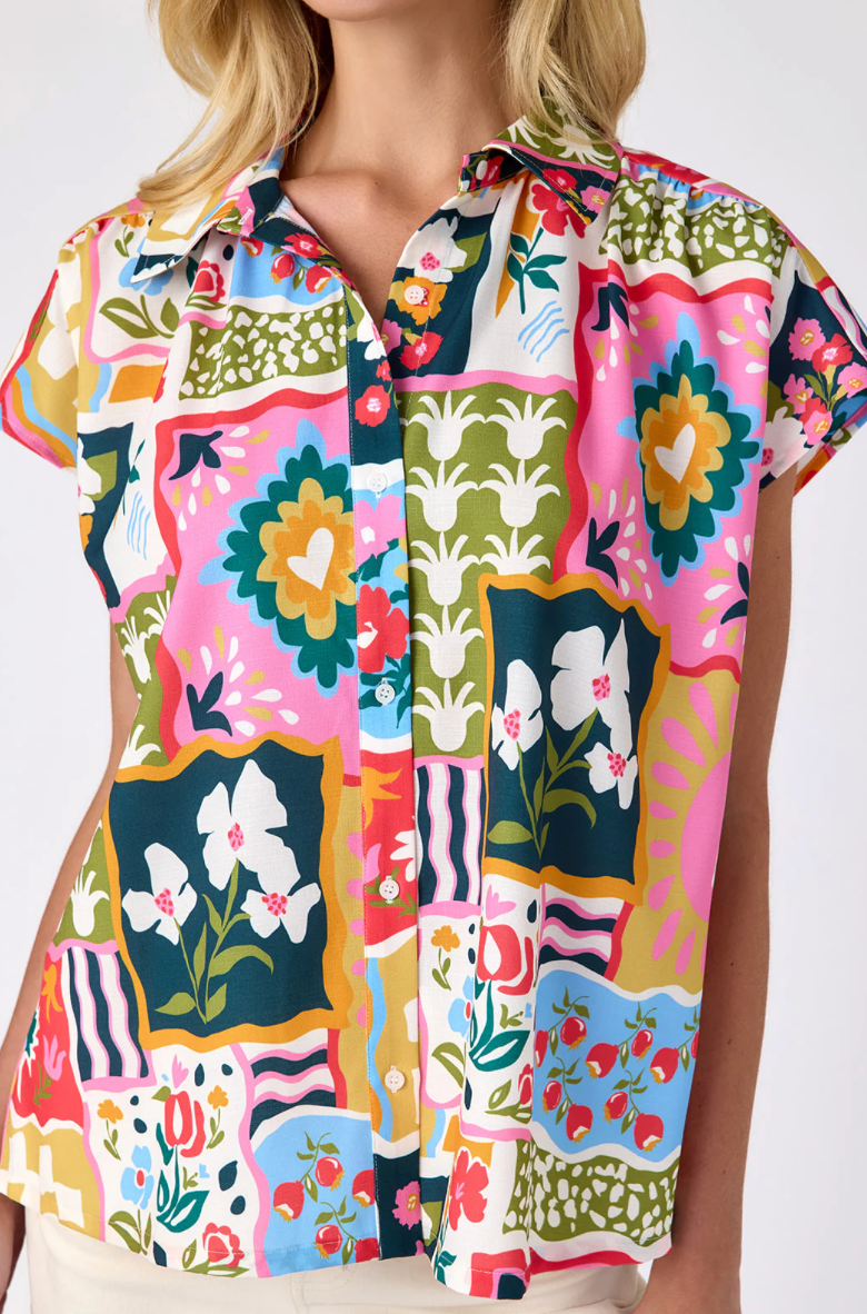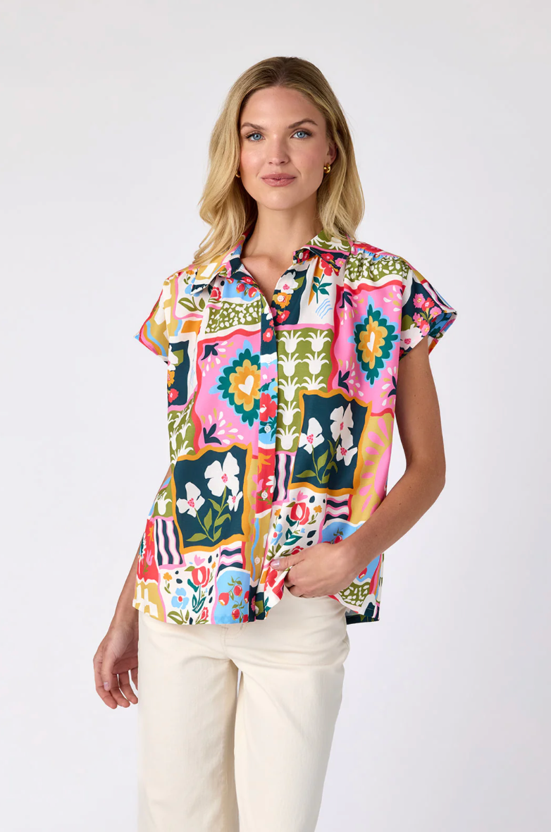 Short Sleeve Tunic Dress - White Hydrangea Stripe