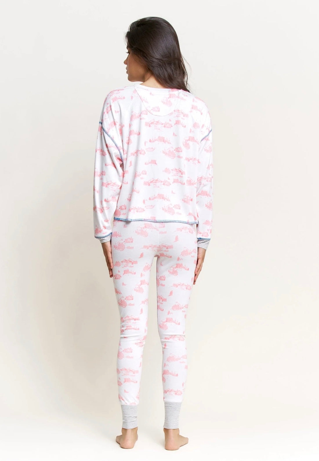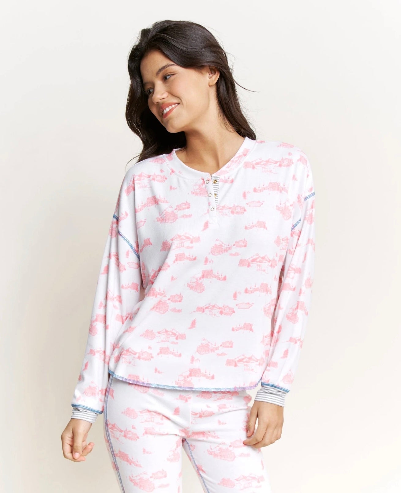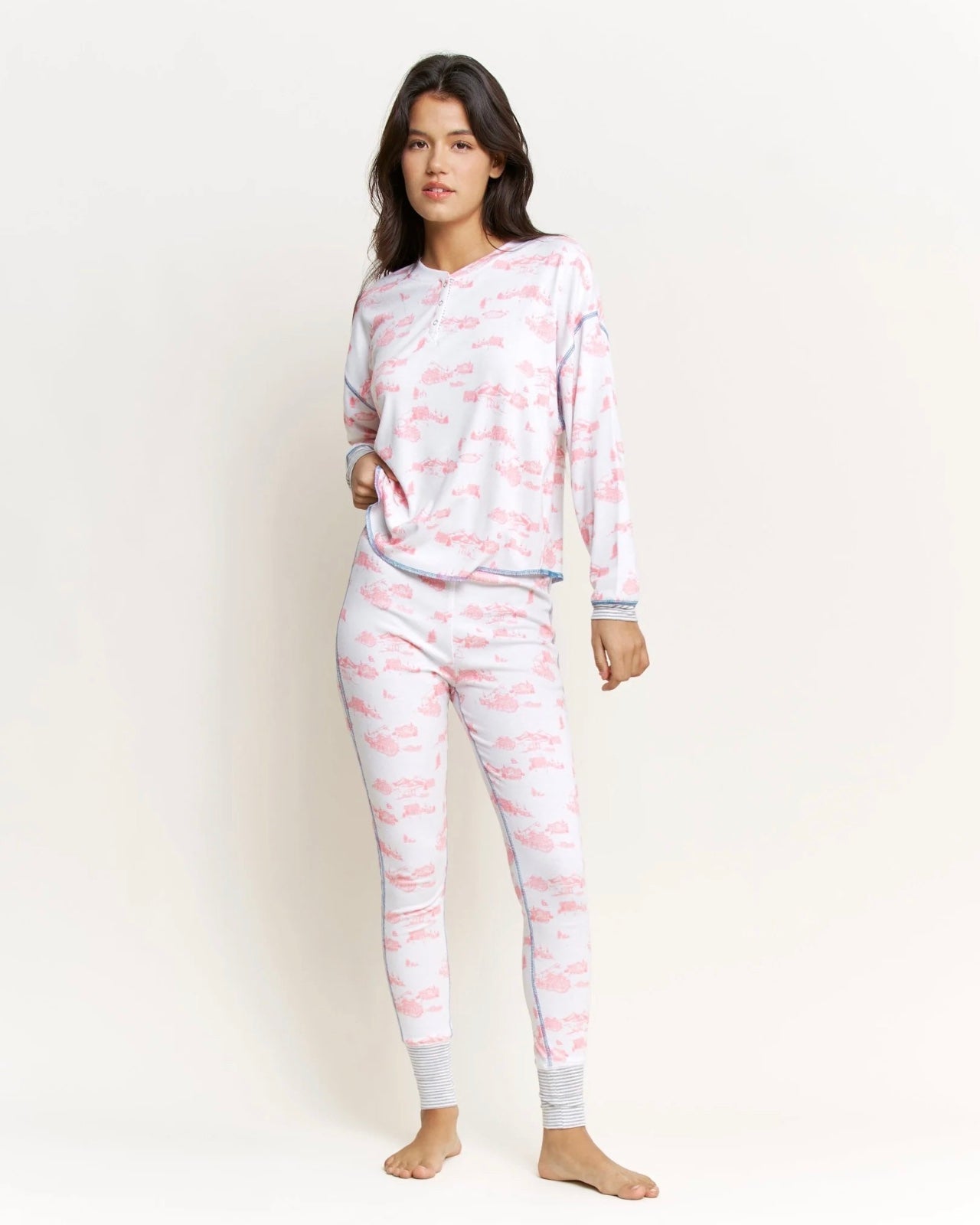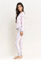 Back In Bed Long Henley Set - White Cabin Toile