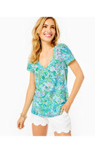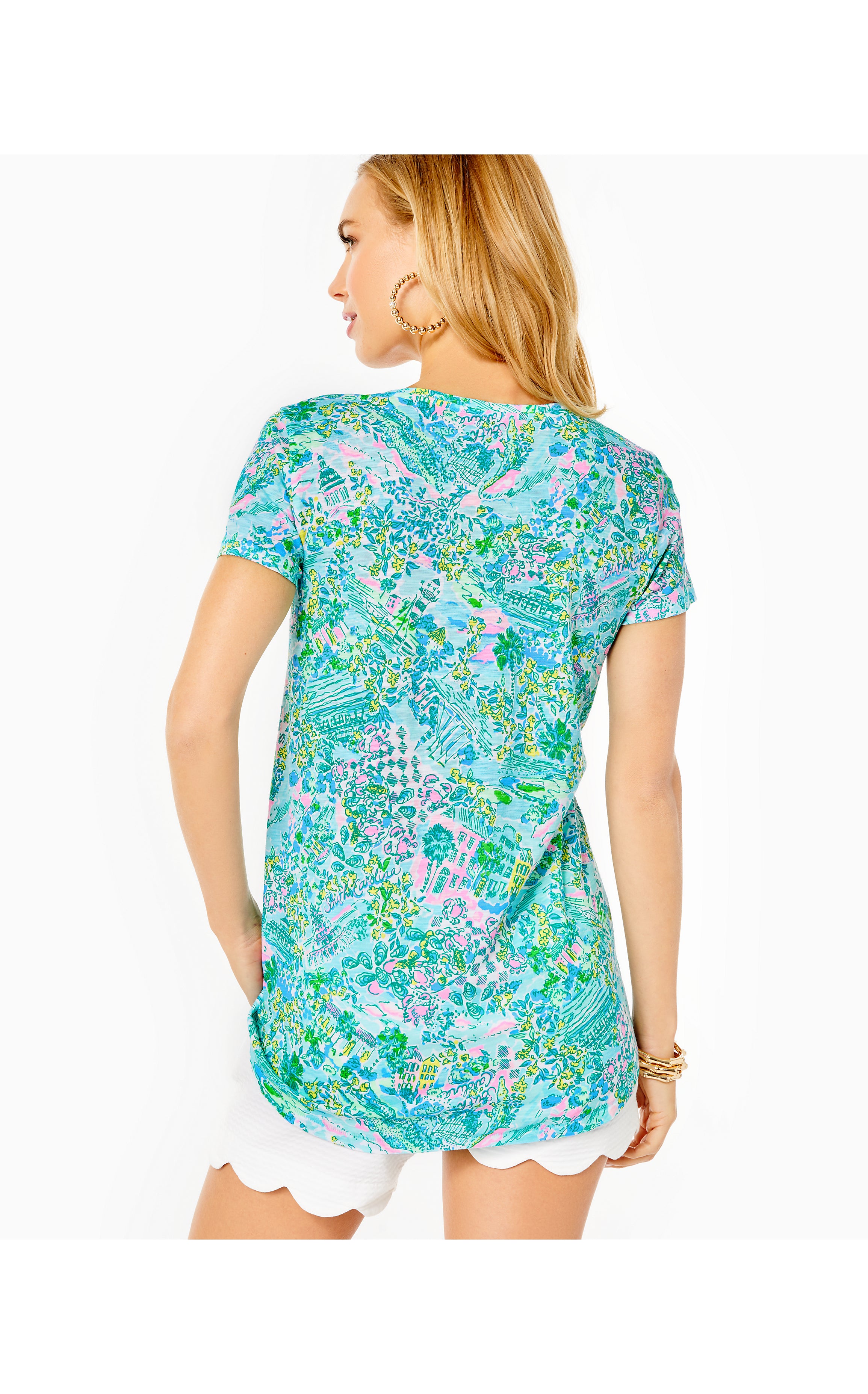 Our effortless Etta V-Neck Top is a short sleeve, v-neck tee in a machine washable slub jersey. Done in destination prints, this easy fit t-shirt pairs perfectly with solid bottoms.