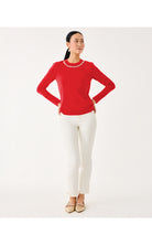 • Straight fit, long sleeve, crew neck sweater with a pearl trim.