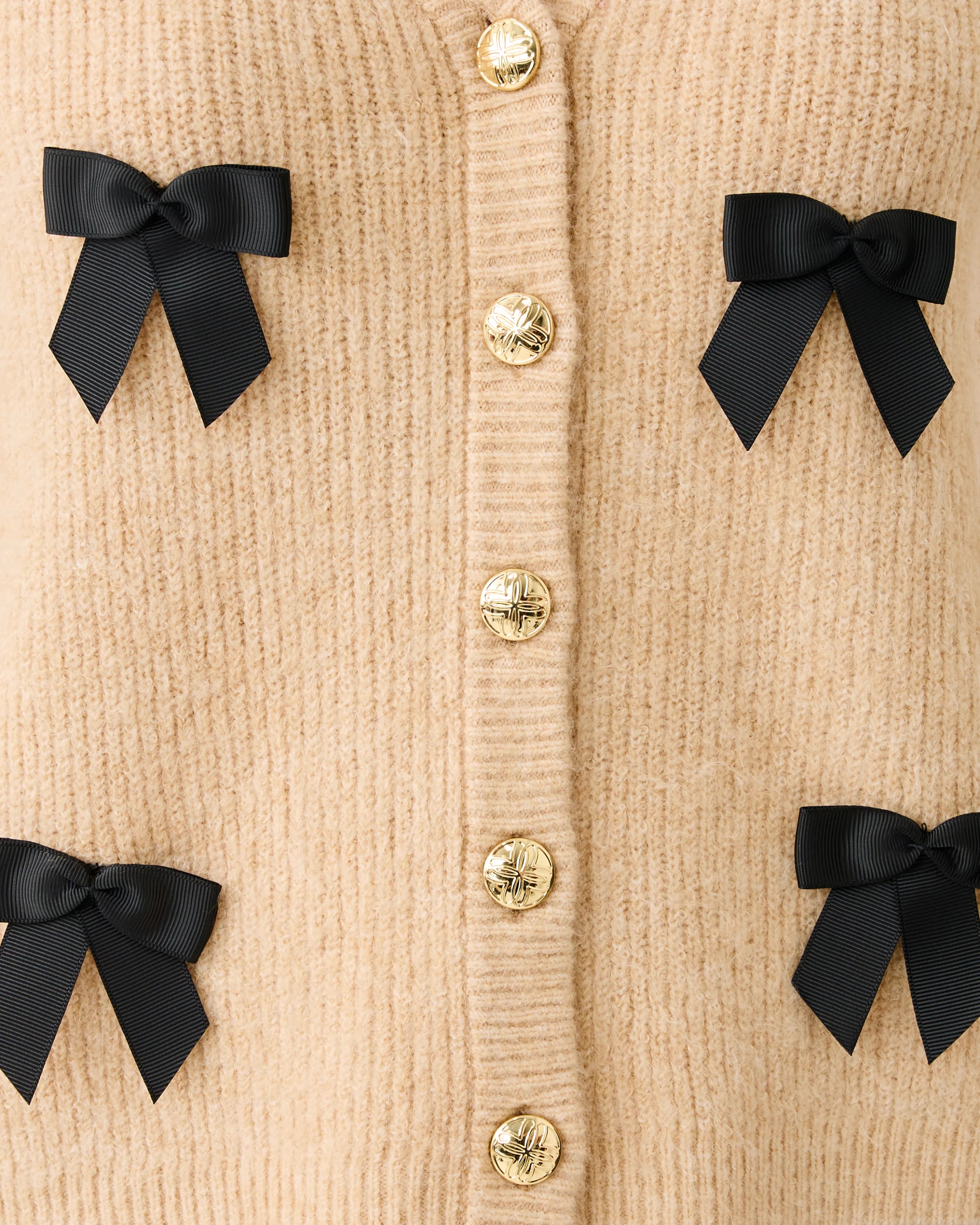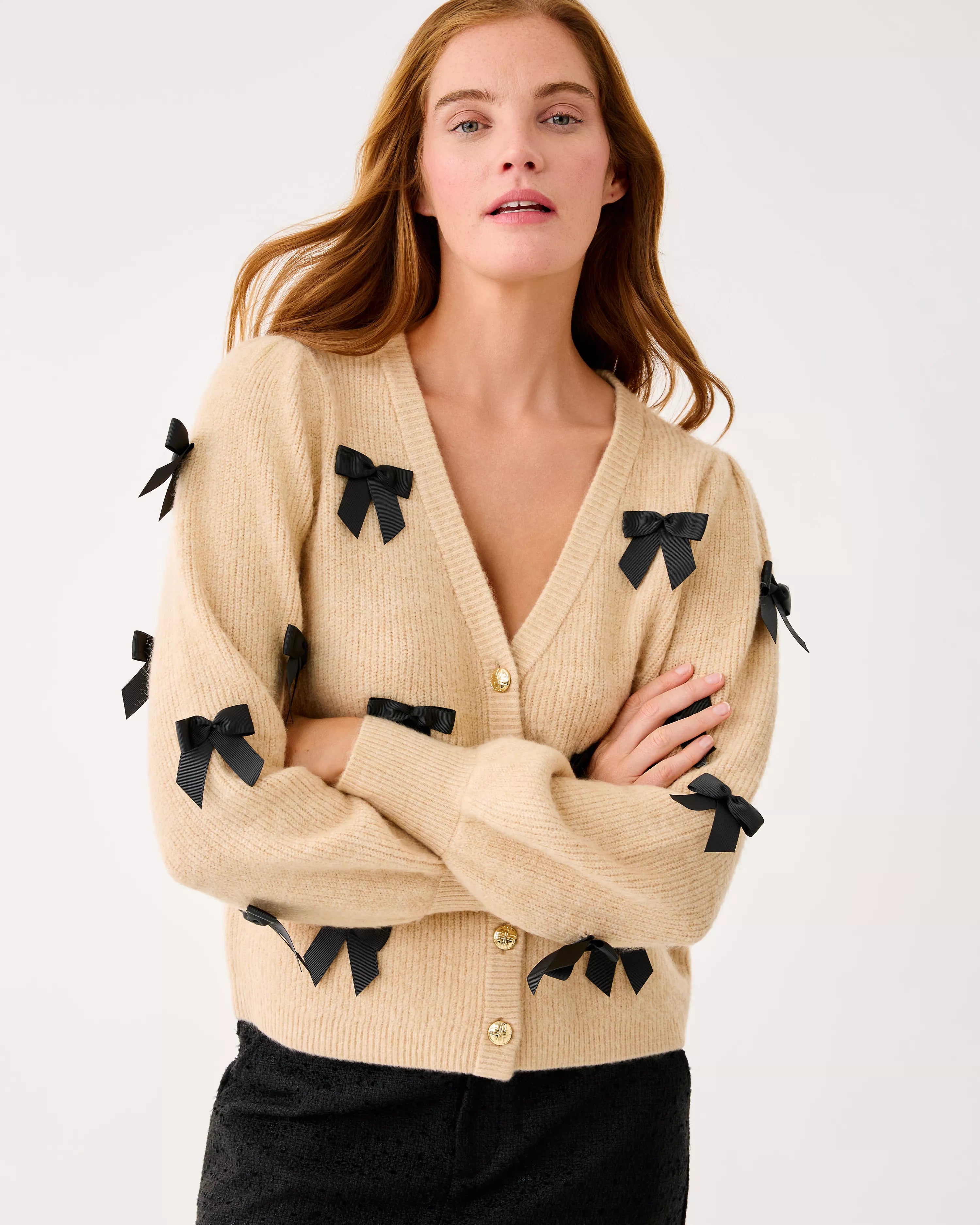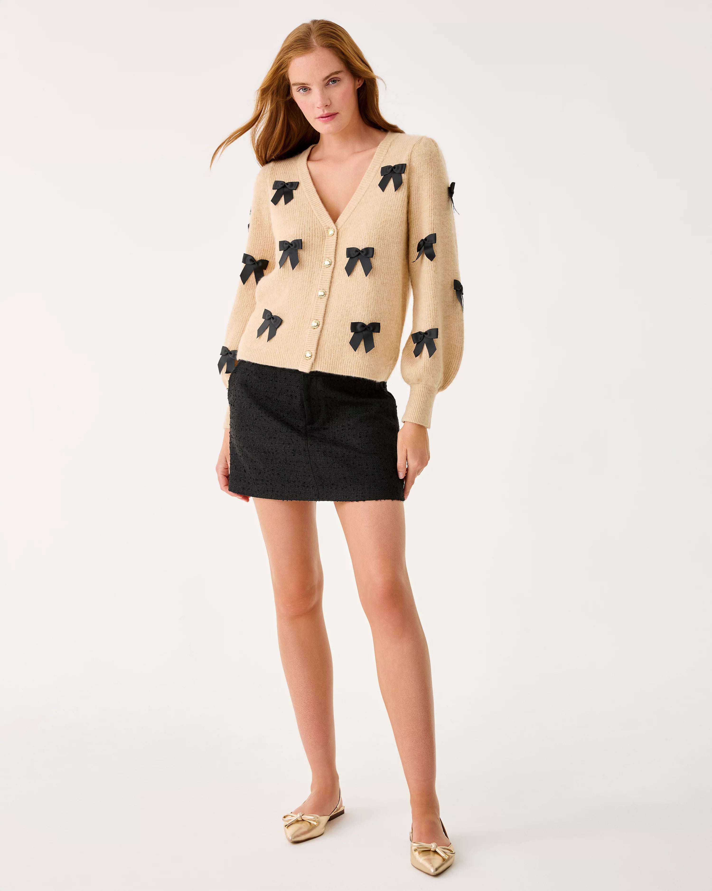 Zarie Bow Cardigan - Heathered Wicker Tan Party Bows