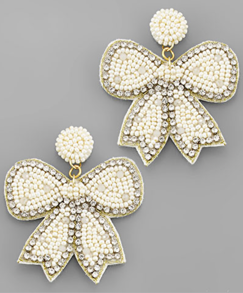 Beaded Ribbon Earrings - Ivory