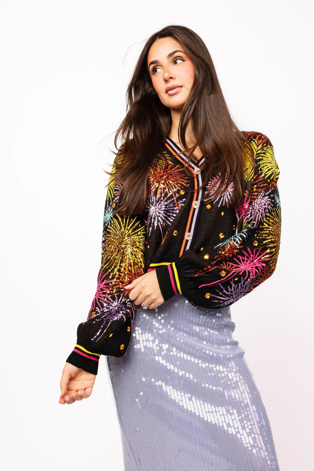 Black Multi Rainbow Firework Button-Up Cardigan – Queen of Sparkles