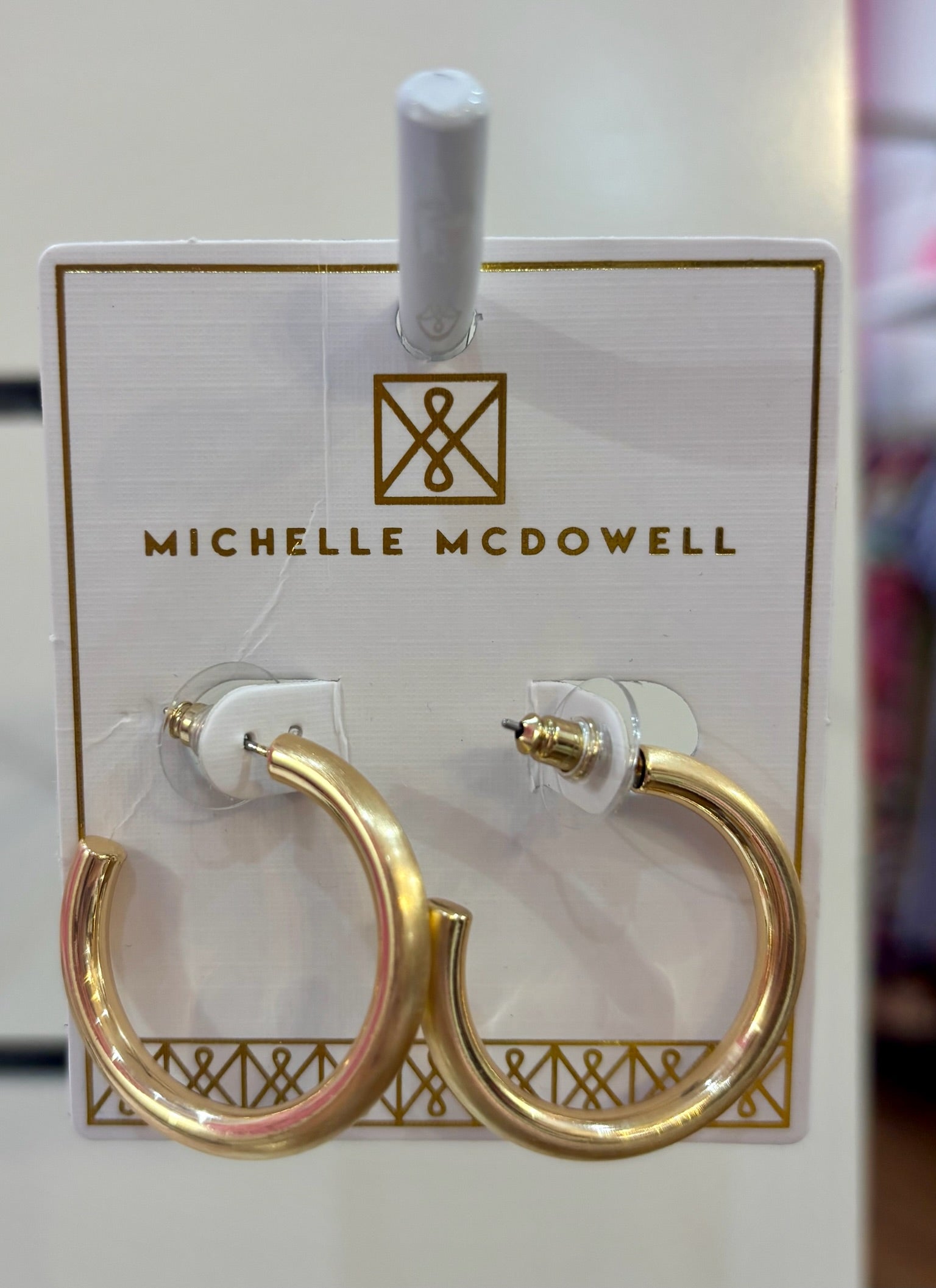 Each pair features a smooth, matte texture that captures the light with subtle radiance. Their clean, contemporary silhouette makes them an easy choice for any outfit—delicate enough for day wear, yet striking enough for evening. True to the Michelle McDowell brand, these earrings balance bold design with a sense of classic femininity, creating a versatile accessory that never goes out of style.