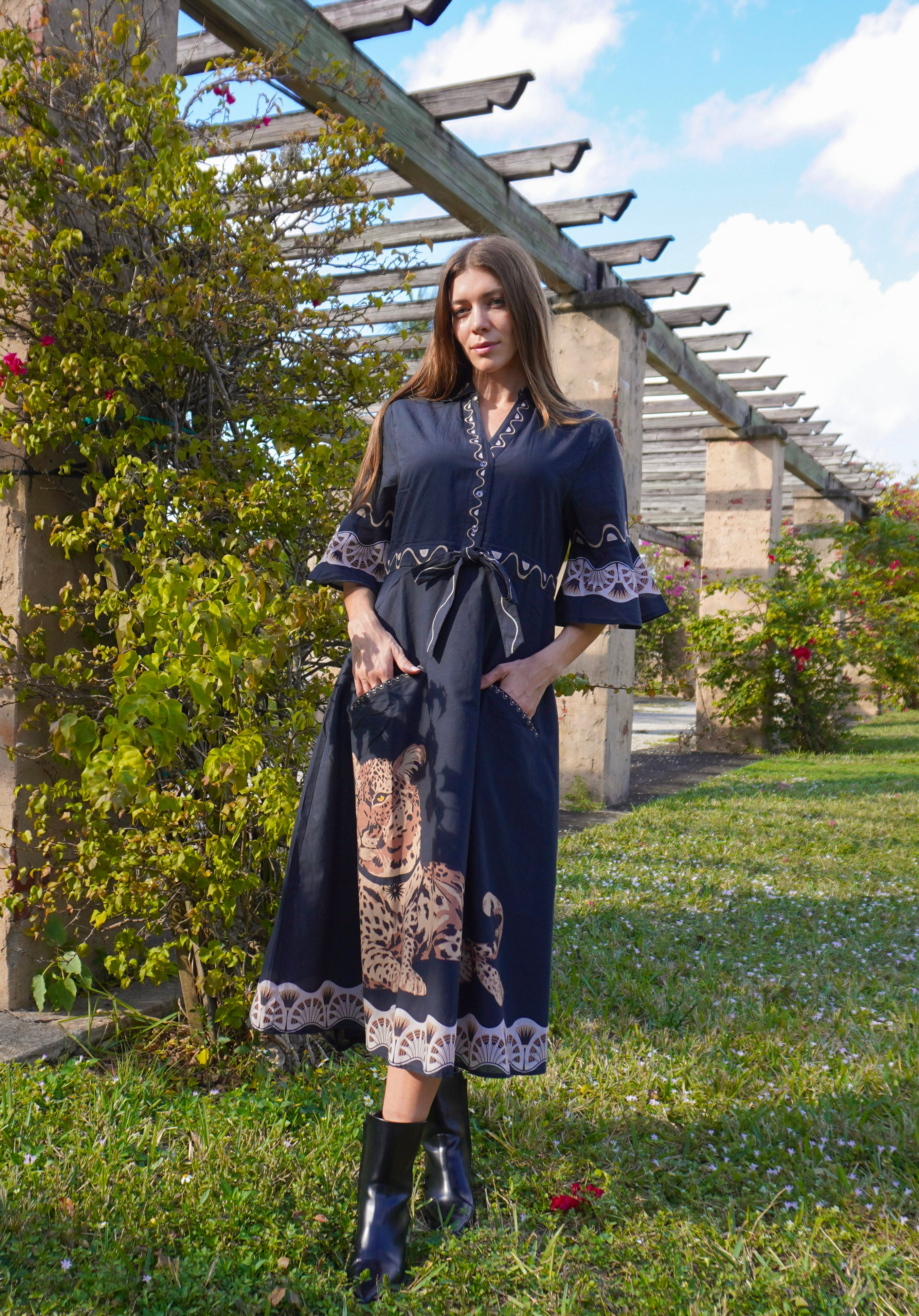 The Cape midi is an elegant silhouette that flatters all body types. It has become a fan favorite with its sophisticated clean look. We love the fun cheetah print. Goes perfectly with black or brown boots.