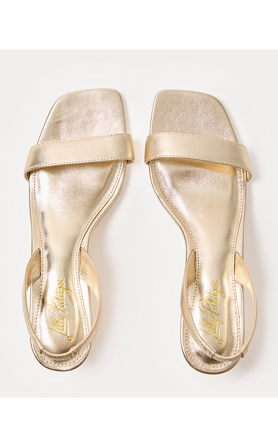 - Strappy slingback kitten heel with a square toe and a plush padded footbed.