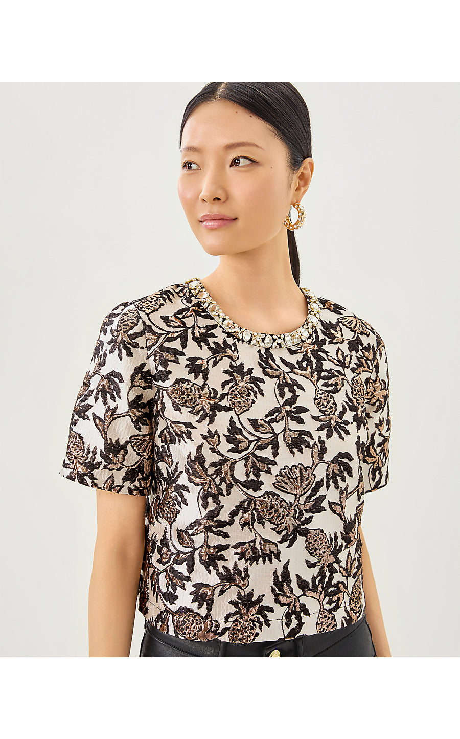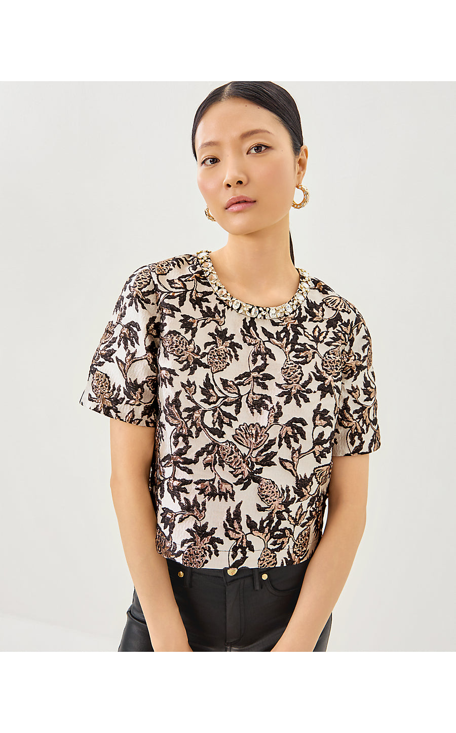 Folie Beaded Tweed Cropped Top - Noir Pineapple Puff Metallic Jacquard
