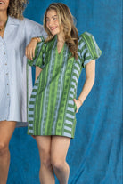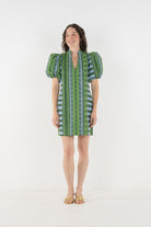 The Hampton Mini in Forest Jubilee is an effortless statement with refined detail. Designed with a mandarin-style collar, puff sleeves, and functional side pockets, this silhouette feels relaxed yet thoughtfully tailored for a flattering fit. Printed on a luxe jacquard fabric, Forest Jubilee offers soft structure and subtle sheen, elevating the look. Easy to dress up with heels or style casually with sneakers, this mini is versatile and polished with ease.