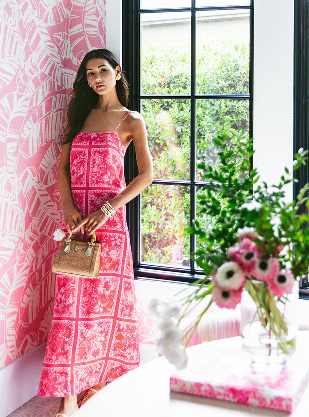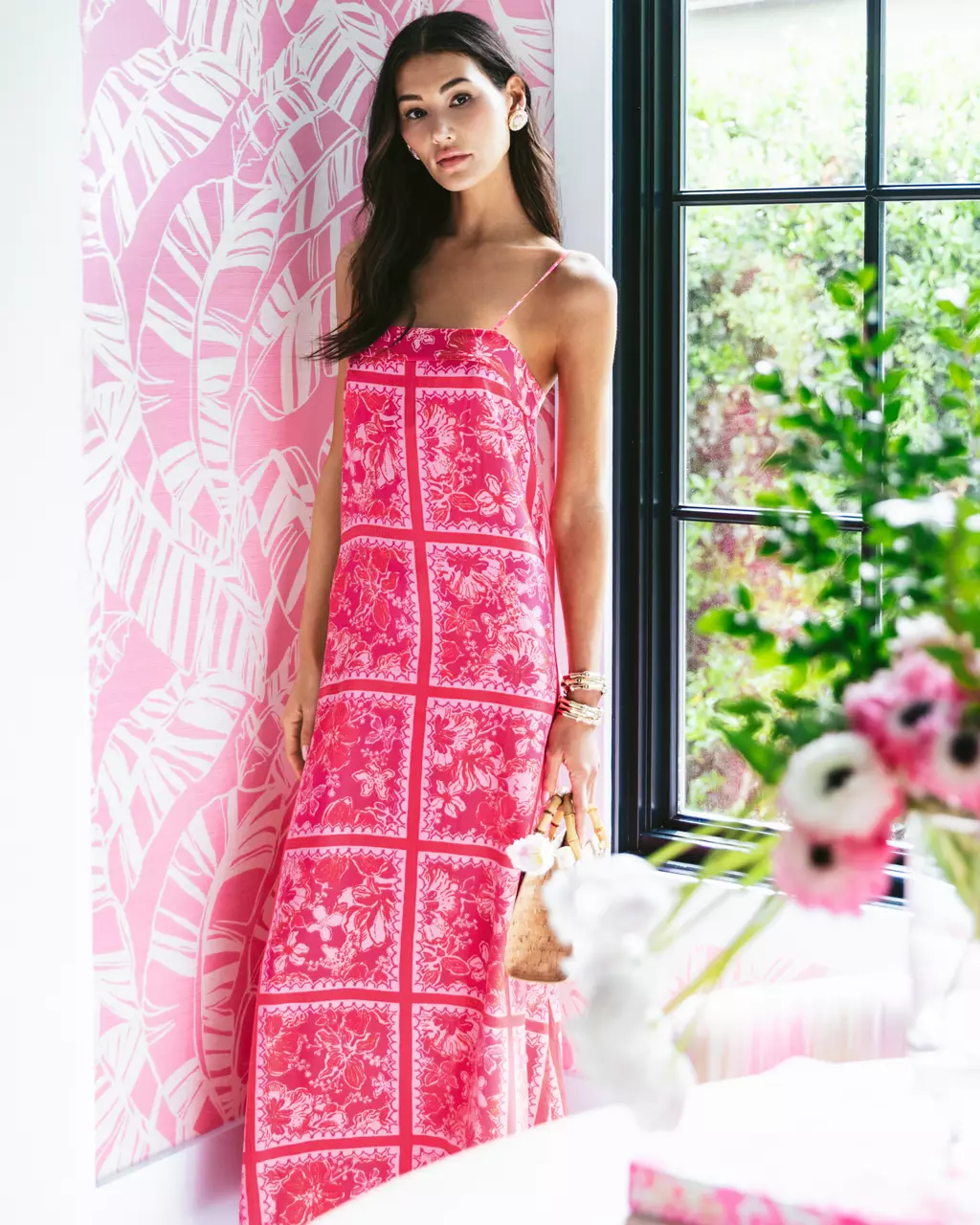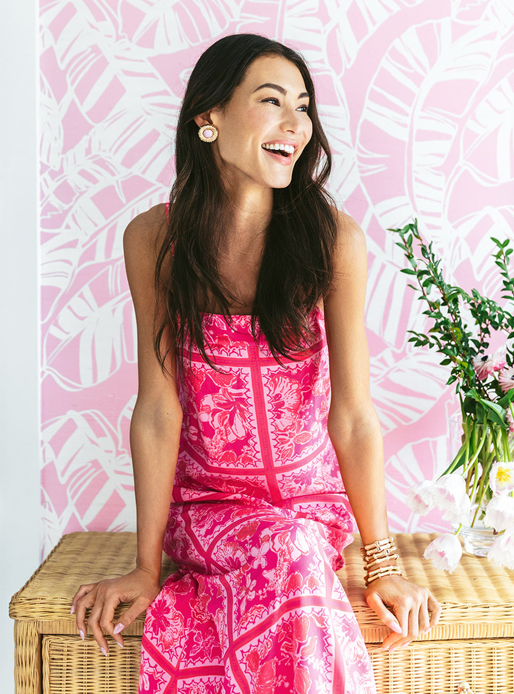 Jesslyn Silk Maxi Slip Dress - Sun Shell Pink Big Party Engineered Woven