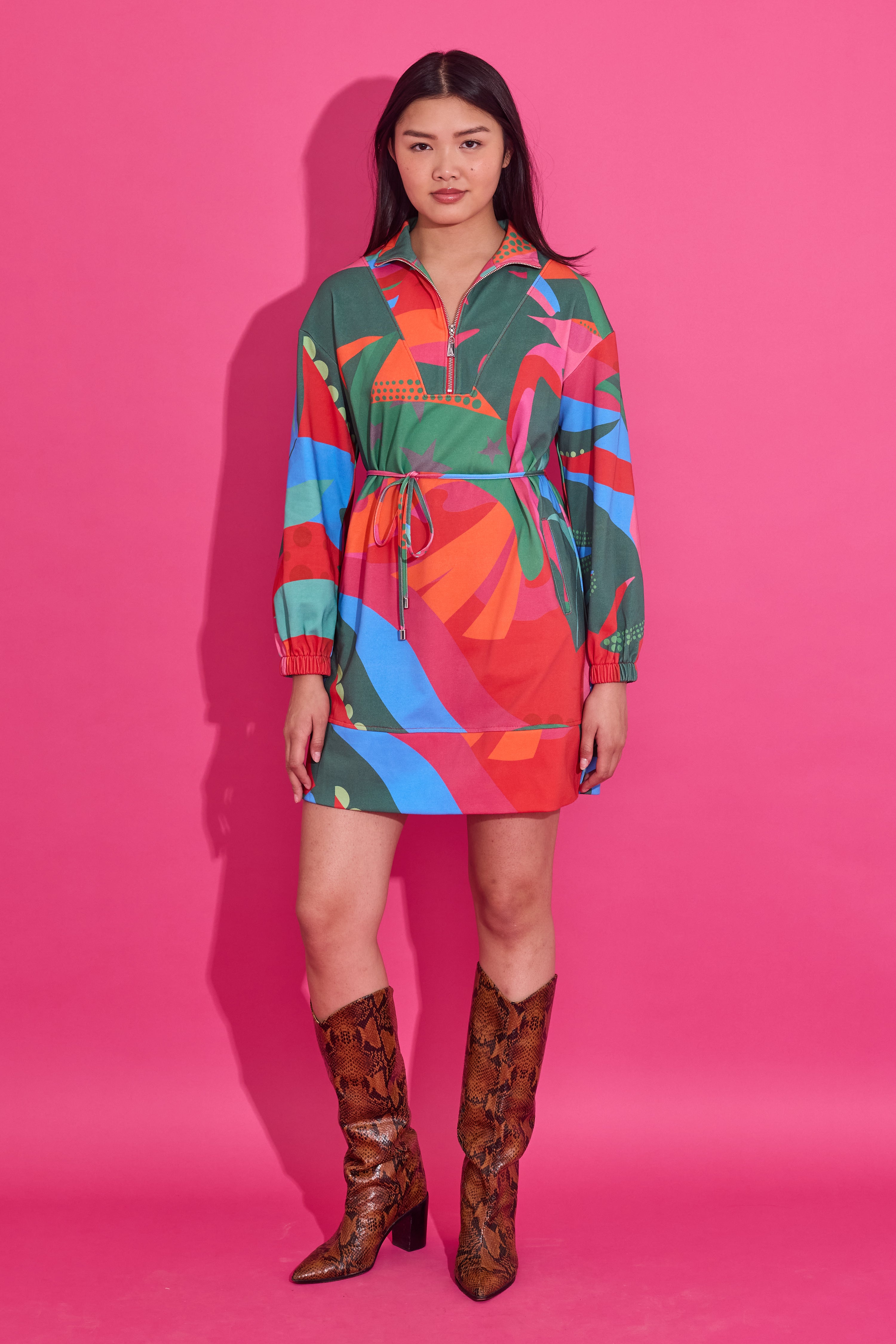Bright, bold, and effortlessly chic — the Logan Dress in Tropical Jingle by Alden Adair is the ultimate statement piece for the season. Bursting with color and personality, this vibrant dress features a lively tropical-inspired print in shades of pink, orange, green, and light blue. The playful palette radiates energy and warmth, making it the perfect piece for sunny days, festive gatherings, or any occasion that calls for a dose of cheerful sophistication.