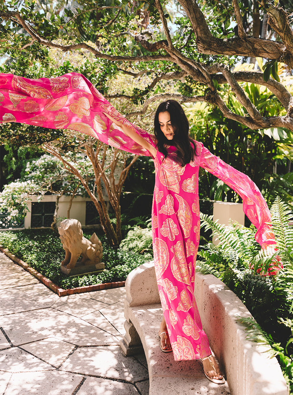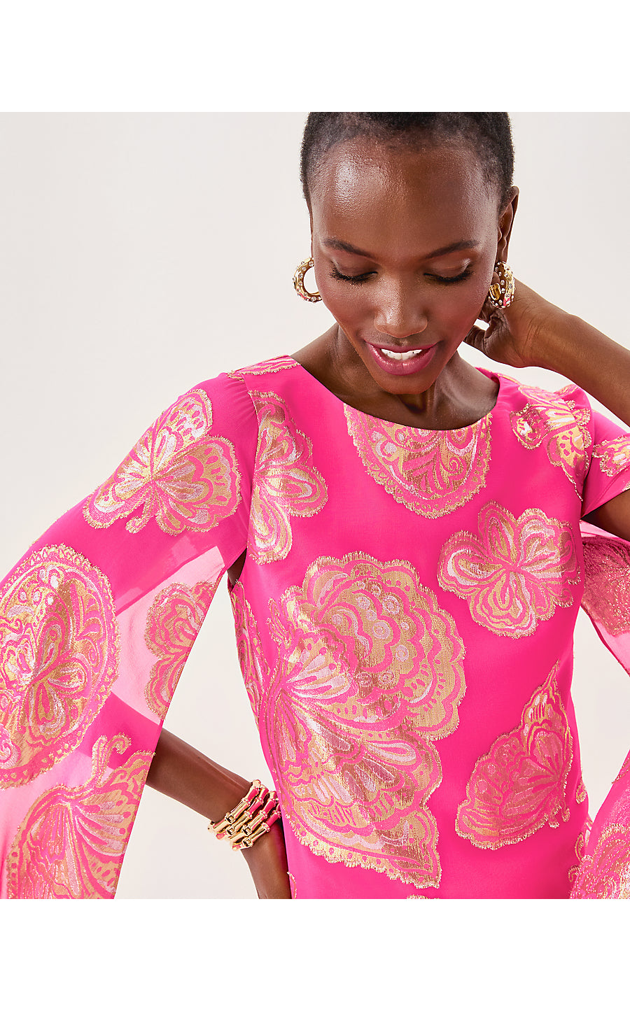 Madelyn Silk Boat Neck Maxi Caftan - Parigi Pink Shes So Fly Metallic Clip