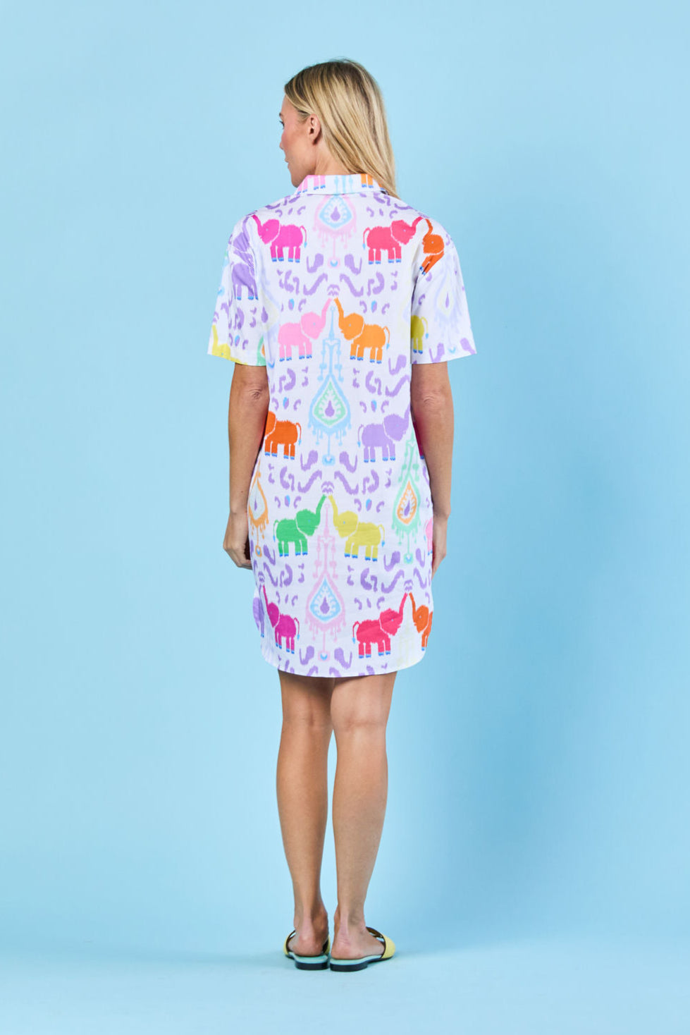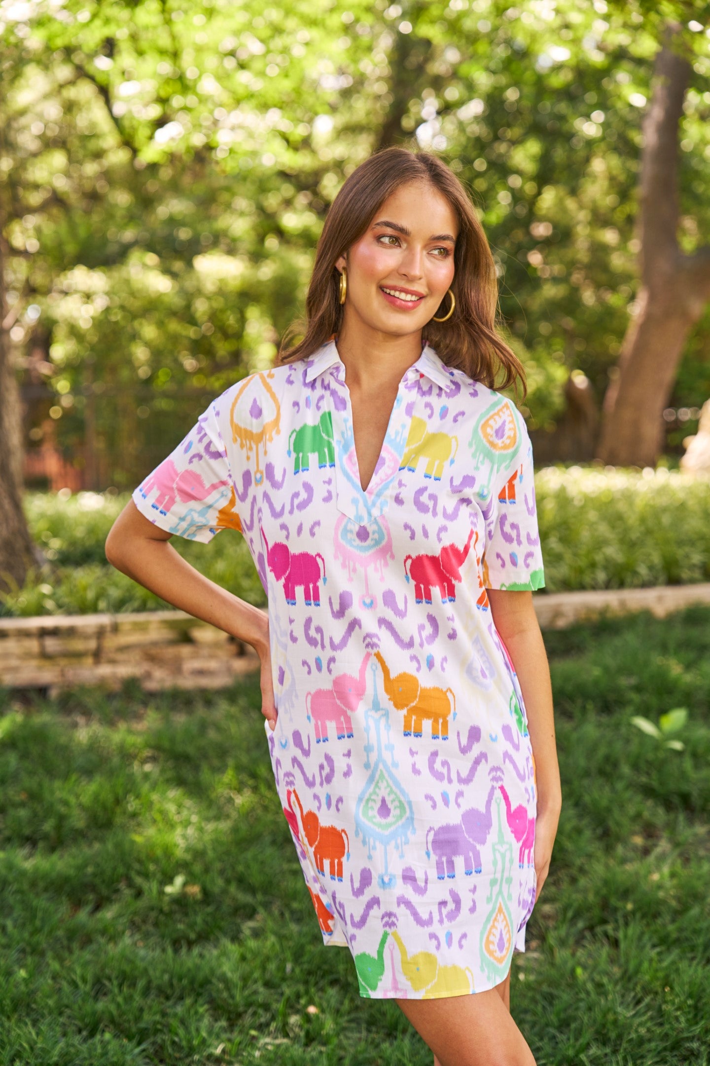 A relaxed mini dress in carefully crafted prints that all conjure joyful escapism. Pair with minimal accessories and chic flats.