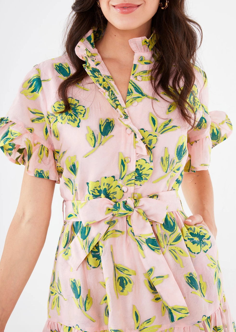 - Ruffle neckline