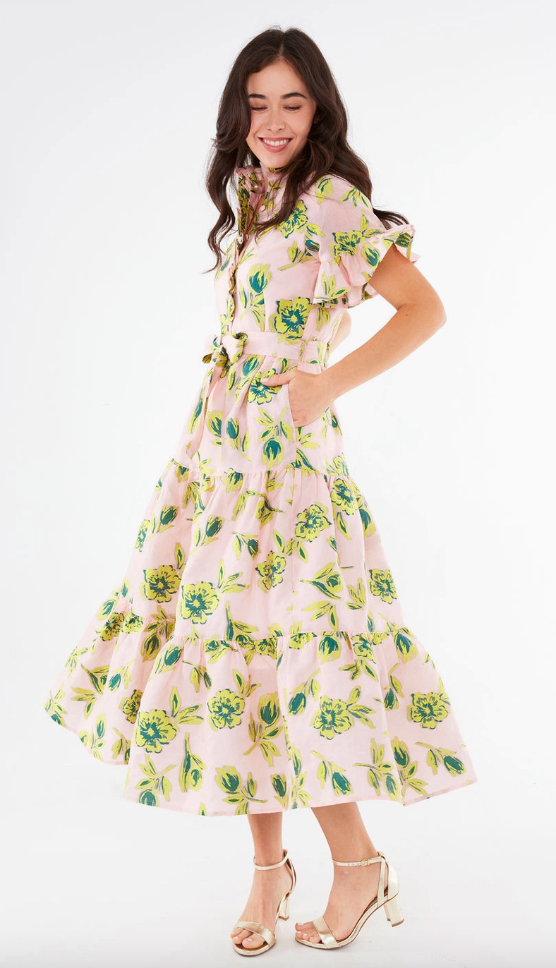 Sadie Maxi Dress Pink Tropical Tulip Jacquard