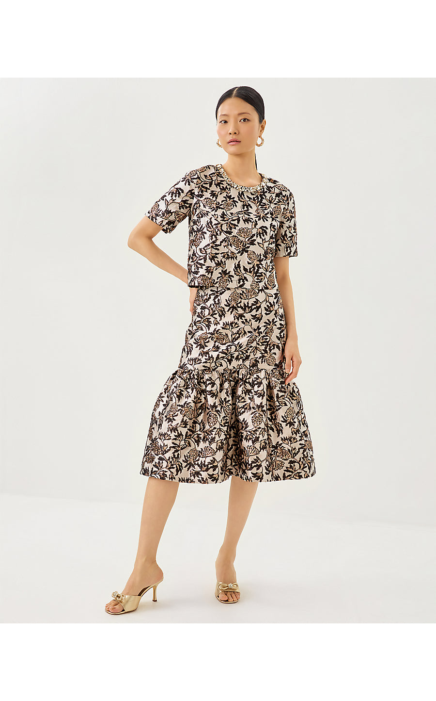 Valora Midi Skirt - Noir Pineapple Puff Metallic Jacquard
